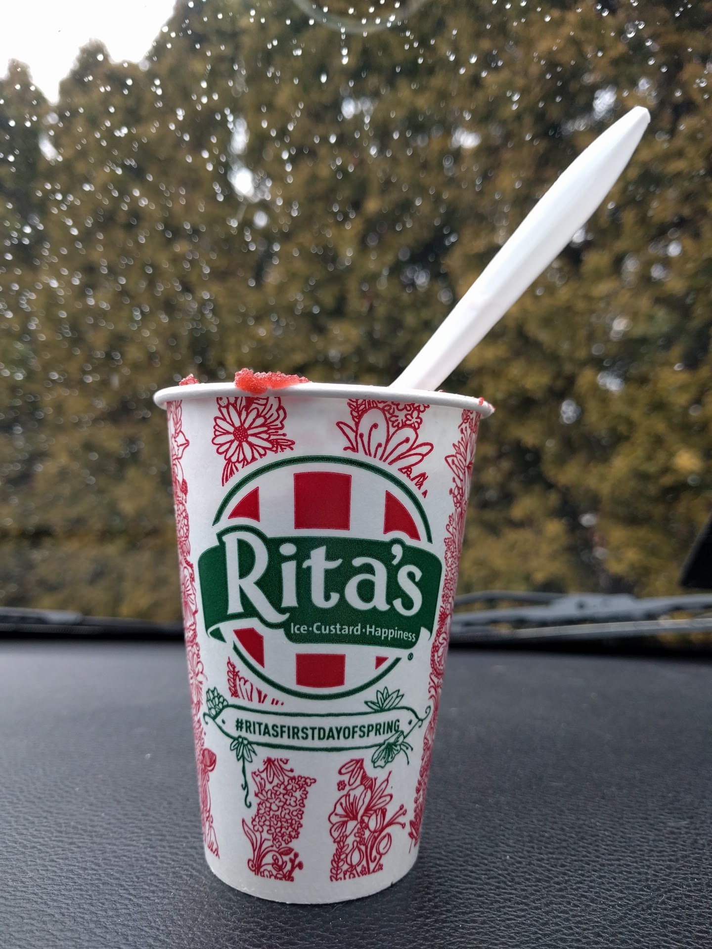 I love Rita's no matter what one I go to it's always the same goodness. Unfortunately I can't have milk products. I love where this one is located it's not in a cramped space like most are when you're there at night it seems like there's no other buildings around and it's the feeling of seclusion while you're eating your Italian Ice. They do have Italian Ice so that's what I get. They always have great flavors. This store is always clean and maintain Employees are always friendly...