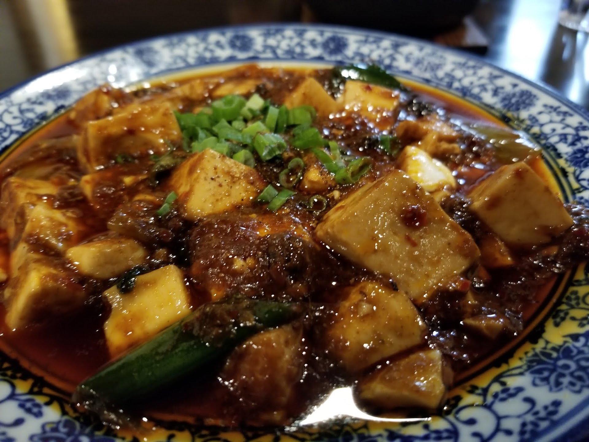Food (5/5): This is real, authentic, Szechuan food. I have ordered Mapo Dofu at so many restaurants claiming to be authentic, and they have all fell flat except for here. A suspension of tons of szechuan peppercorns, fermented black beans, and hot oil coat perfectly seasoned cubes of silken tofu accompanied by expertly cooked white rice. I ordered it extra spicy and they did not disappoint. My hot and sour soup was both hot and sour (what a surprise!), and had a deep earthy flavor from the generous addition of wood ear mushrooms. The wonton soup was great as well, the broth was obviously home made (not the sickly yellow broth found at every Chinese American restaurant) and when I ate a wonton it literally exploded in my mouth with juices. We ordered dry pot duck, but I do not think that is what we received, the waitress seemed confused even though I pointed to what I wanted on the menu. It was more of a stew, but it was extremely delicious so no complaints. The salty broth imbued with fat and marrow from the duck bones was the perfect match for potatoes and a steaming bowl of rice.