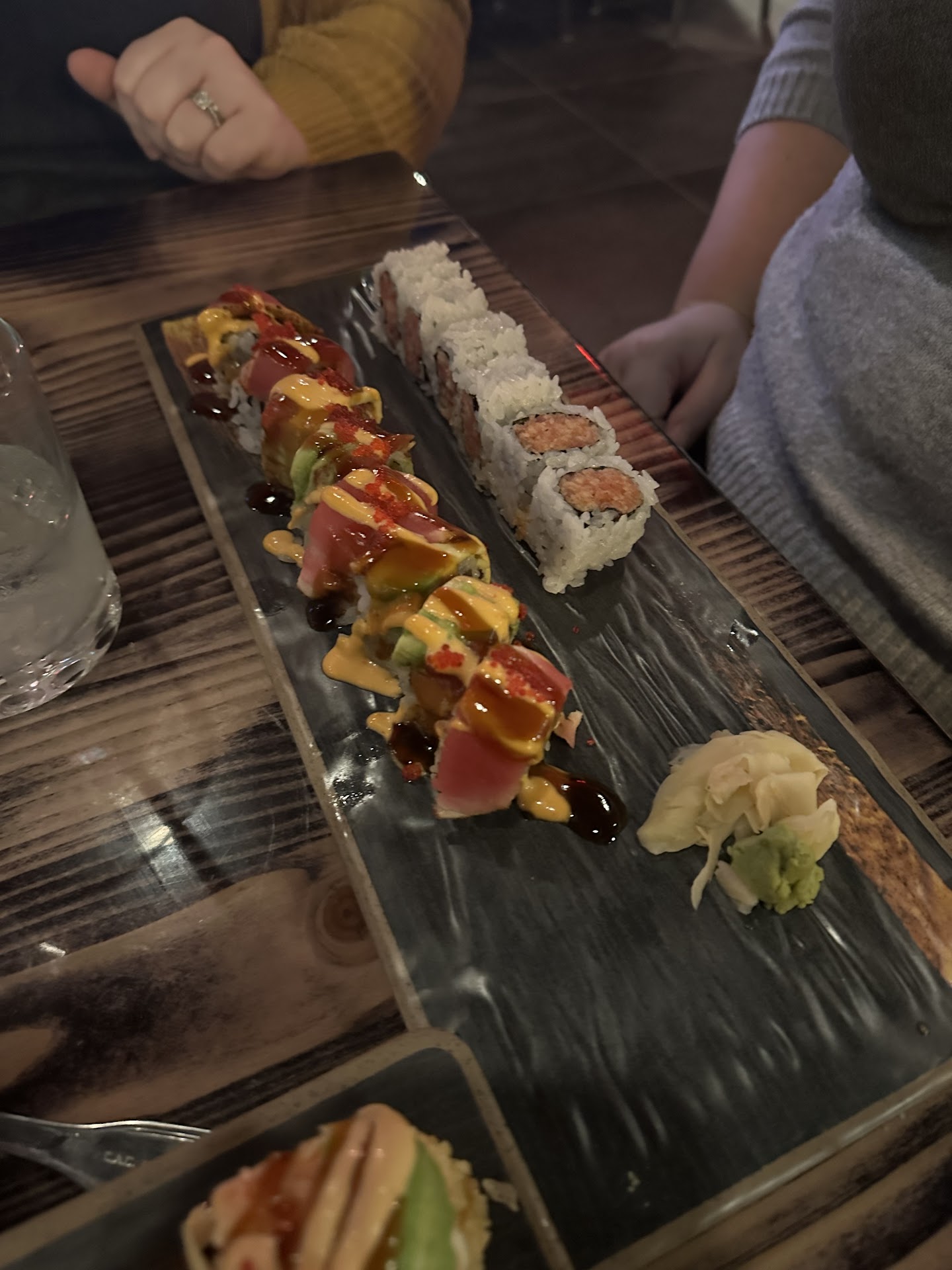 Letās start with the food. The drinks were just ok, not the best. The sizes were decent for the cost of the drink. The appetizers were mediocre at best. The Steak and Steel dumplings were very over priced but you do get 12 of them. My partner and the rest of the table thought it had a cigarette smoke taste to it but I didnāt notice. The crab rangoons were just ok. The fried calamari was definitely from the freezer section. The sushi rolls were largely underwhelming for the price point. The spicy tuna had no spiciness and frankly no taste whatsoever. A few of the signature rolls were decent. The sashimi were bland and watery. The size of the sashimi pieces were good but not enough to make up for the lack of taste. The sushi rice was too soft and mushy.