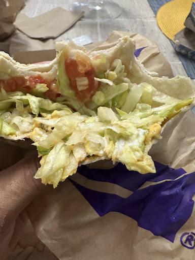 Good location and nice outside tables that you can use to eat your food. Food was horrible, ordered crunchy wrap but they put minimum veggies in there. It was all bread without much sauce which I had pay extra but got minimal sauce and veggies stuffed in that crunchy wrap. I show my concern to the manager on duty and he rudely said thatâs what corporate wants him to add in the crunch wrap. I had several crunch wraps from several other taco bell so not sure what kind of corporate rules this manager is following. He treated other customers that complained to him very rudely too. I wish i got his name but it was at around 11:30pm on 8/29/25 so hopefully someone from the management team can see the schedule to figure out on duty manager. Never going to repeat them unless they hire better staff that knows how to...