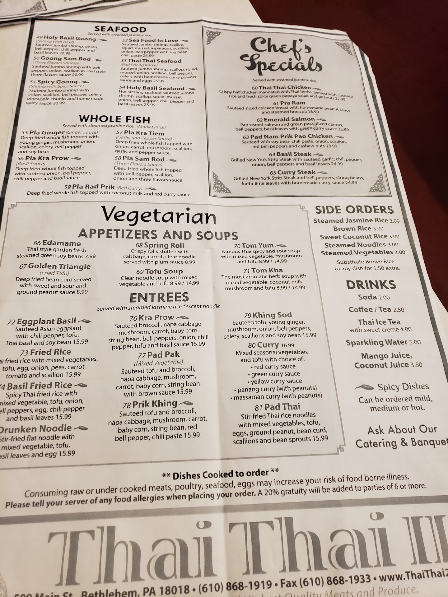 The aesthetic inside felt more Thai, with dated Asian looks and pictures of Thai royalty around — which is usually a good sign that it is Thai run, therefore usually having more true Thai flavors, but the only two people we interacted with were not Thai so I’m not sure if those roots still exist.