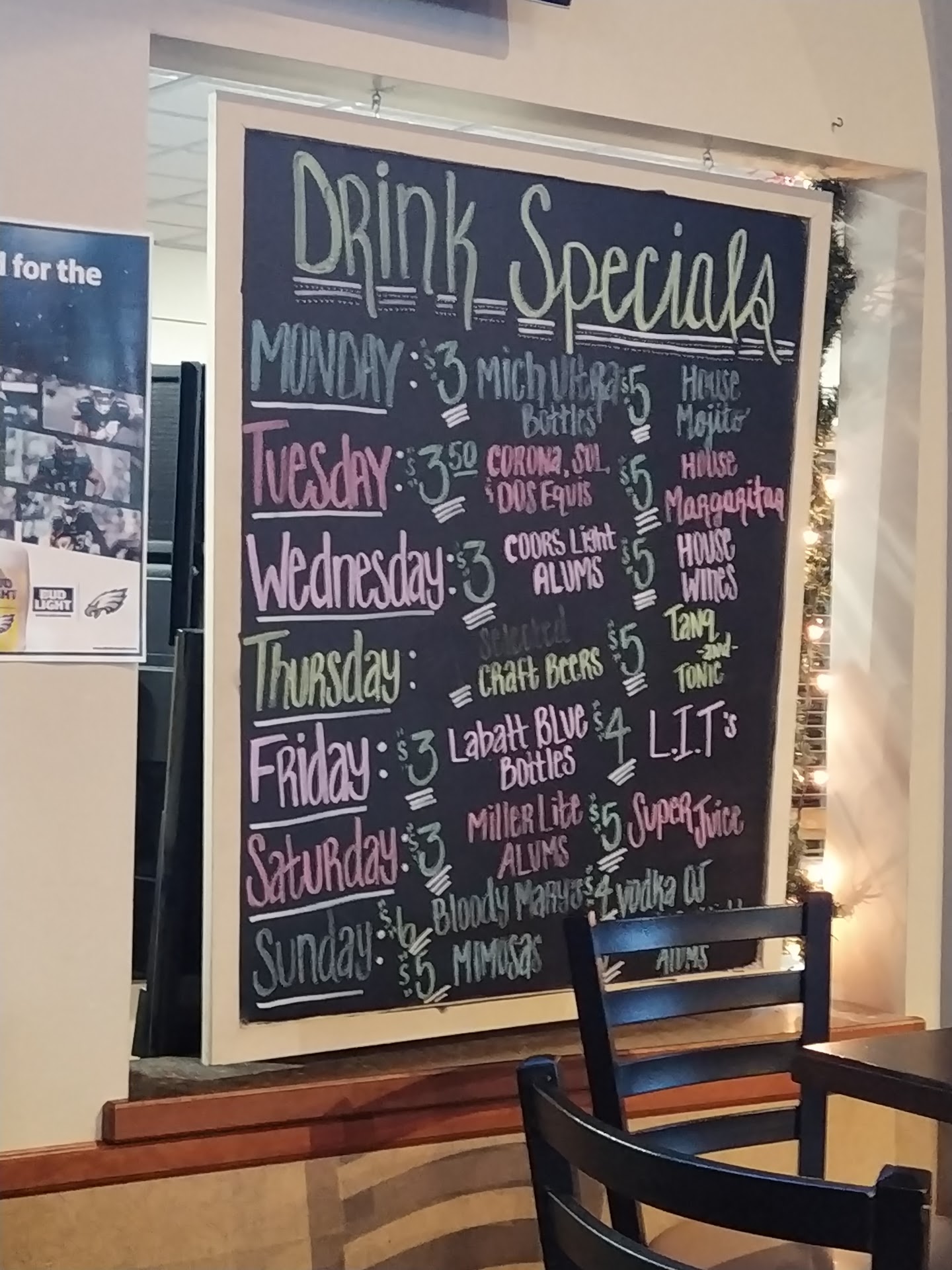 Con (I discussed with my waitress too): I was unable to determine if it was wing night Wednesday the night we were there. Website stated nothing about special nights. Checked their FB page and the last wing Wednesday post was approx a month ago with another handful of posts since then. I checked the bar drink menu which had a happy hour special page on the front, nothing there. I was unsure if this was a monthly or weekly thing until I asked the waitress who explained it is every Wednesday half price wings. Certainly recommend posting more delicious foods and specials on social media will do the Clubhouse good to gain a following and get more people in.