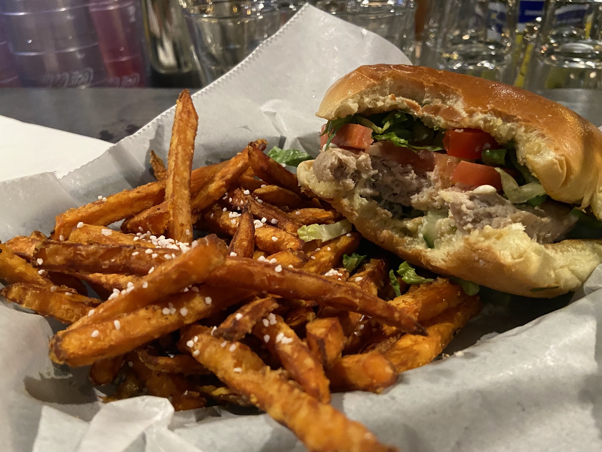 We had a couple of hiccups. First, my sandwich was really burnt. When I asked to get a new one the waitress told me that she didnât know if they would make me a new sandwich. A few minutes later she did bring a new one out that was cooked better. I was a little put off by how the waitress was very unsure. And was also like that when I asked if I could have a pork roll sandwich. The fries would have been good but they were super salty.