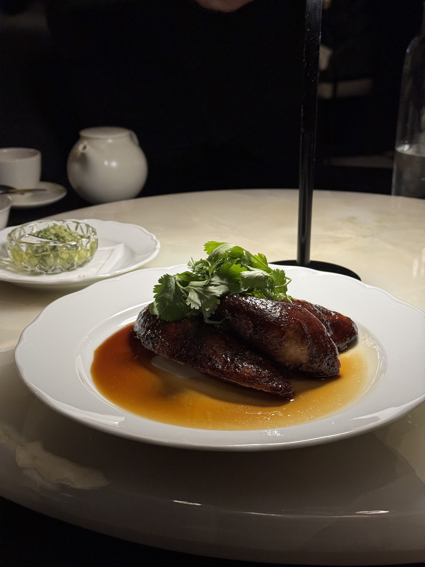 The food was thankfully the best part each dish was well prepared and fresh. It's not traditional Chinese food but it's enjoyable. The plating was sometimes odd with several dishes piled high with cilantro that seemed out of place but I didn't feel any of the dishes were bad. There wasn't anything special or imaginative outside of the cocktails.