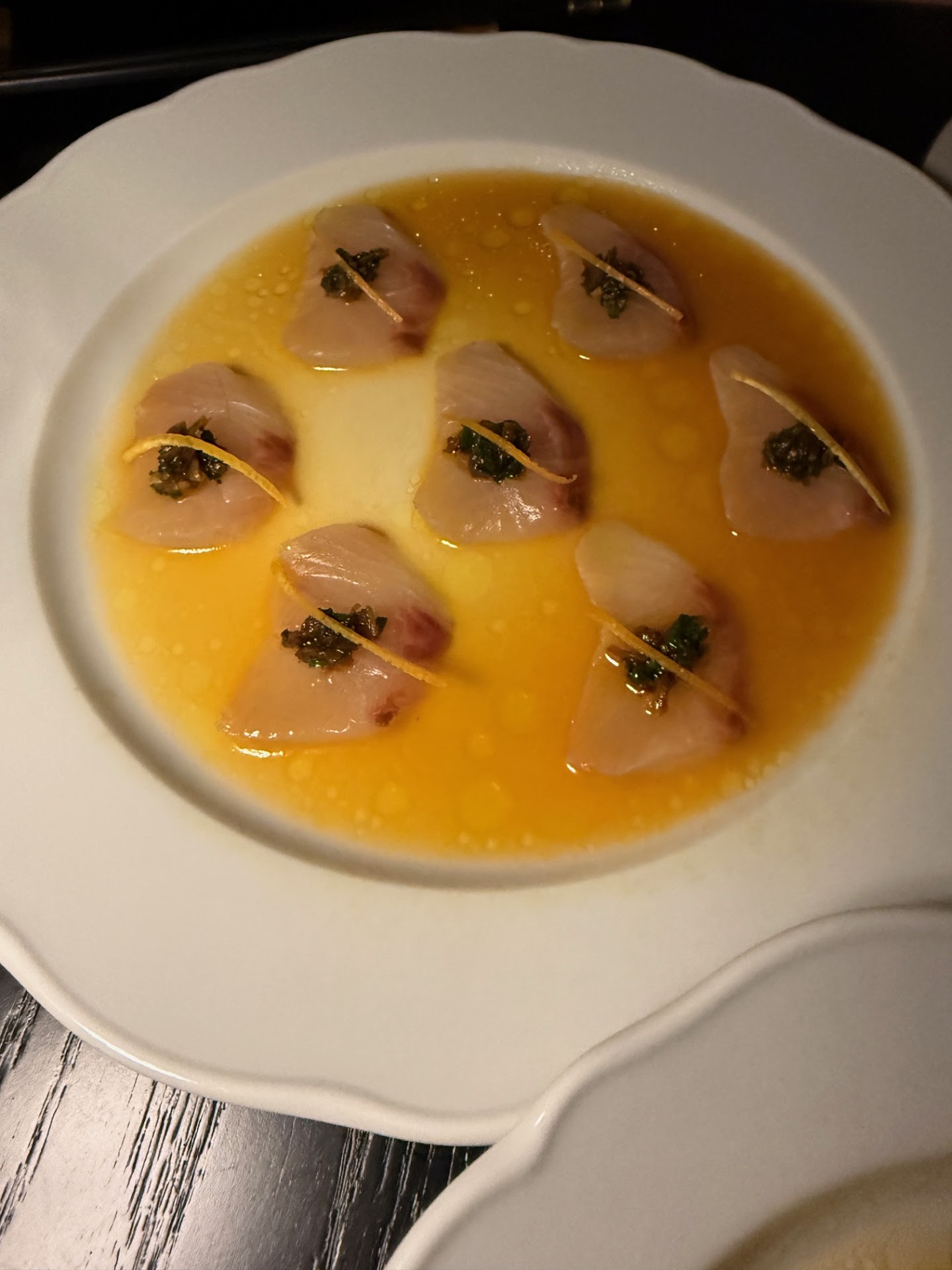 Hiramasa Crudo - tangerine dream fish dish. Very refreshing.