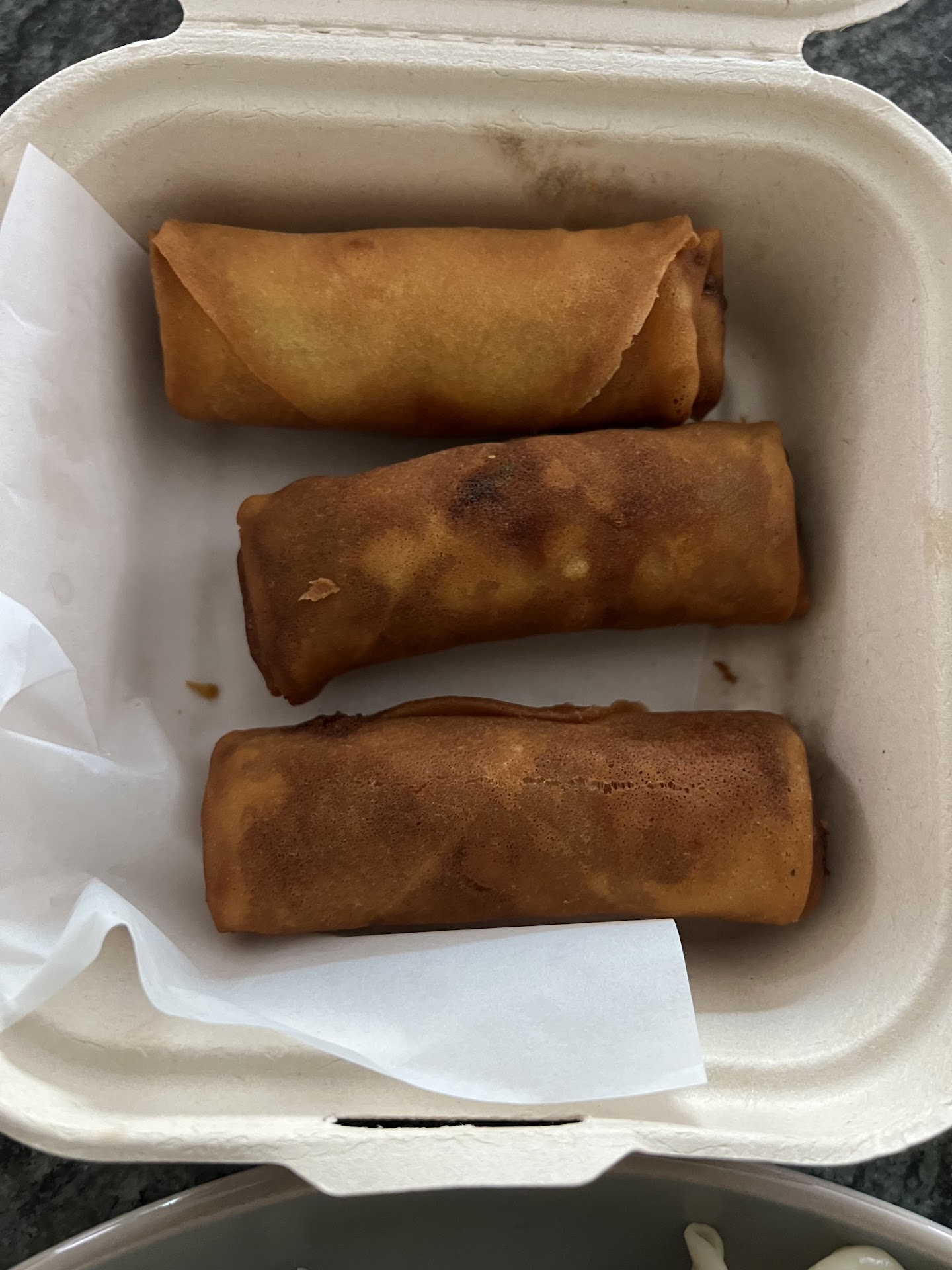 the crispy spring rolls, too, fell short of expectations. their resemblance to frozen offerings from Trader Joe's, hastily deep-fried in seemingly aged oil, was uncanny. the exterior was excessively crispy, betraying the mushy interior where the distinction between vegetables, whether naturally crunchy or soft, was lost in a uniform mushiness, detracting significantly from the eating experience.