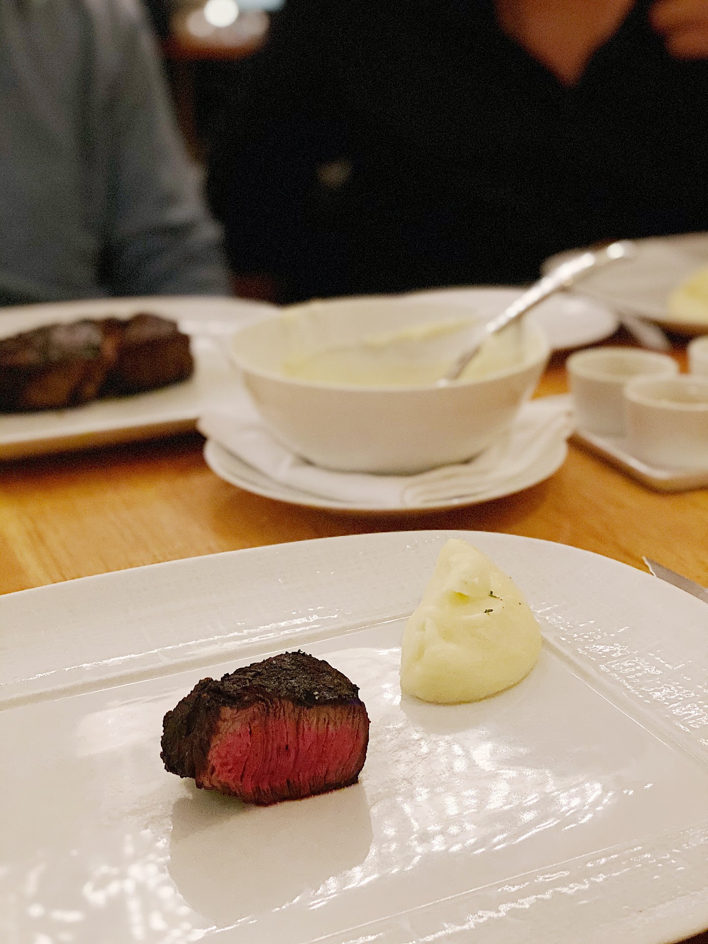 We got the A5 Japanese Kobe New York (expensive but wow so good) and the 6oz Filet Mignon, the octopus appetizer (insane!) and oysters (so good) and a couple cocktails.