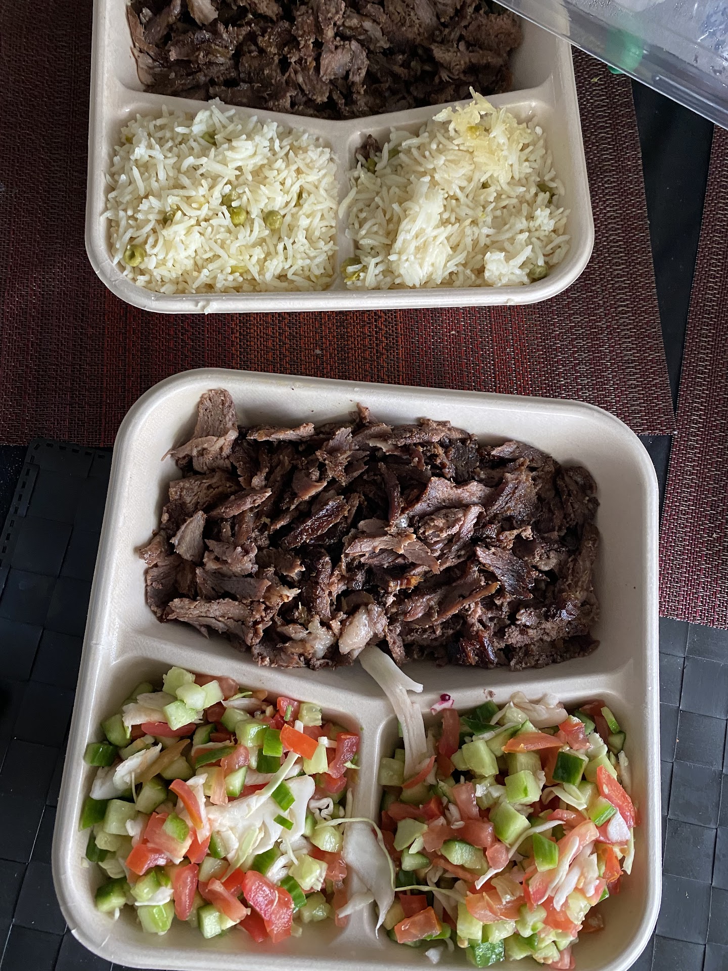 On top of that, during the same order, I noticed the 1 lb shawarma option was priced the same as the shawarma plate, so I asked how much meat comes with the plate. I was told half a pound. Naturally, I opted for the 1 lb option, expecting double the amount of meat. But when the order arrived, the amount of meat was exactly the same as on a regular plate, just served in a paper dish instead. When I brought this up to the server, they changed their answer, saying the plate comes with a little less than half a pound. Confused, I asked why I’d pay the same price for less meat, have to buy a pita separately, and miss out on the sides. Instead of addressing the issue, the server said, "You're lucky we gave you more than a pound. A pound is a pound, and the plate is filled with our hearts." They then rudely told me to sit down before my food got cold.