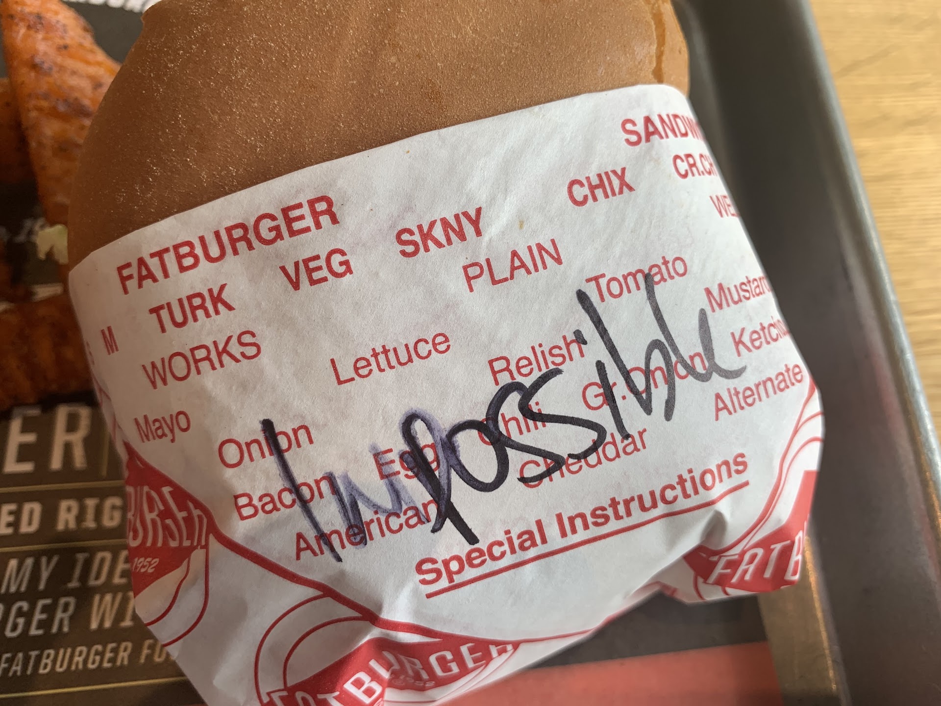 Read moreWent there to buy an Impossible burger for my wife. This burger is a vegetarian burger and is cooked separately from beef burgers. I observed the cook making them. She put the vegetarian patties on the left grill, right next to the beef grill. It was actually one grill but with a 3 or 4" tall metal fin between the two. I observed the cook making beef burgers on the right, placing small individual metal inverted cups over each burger as they cooked. She then placed the vegetarian burger patties on the left side of the grill. Then I saw her take the metal cups from the beef grill, that were just covering beef patties and place them over the vegetarian patties, contaminating the vegetarian side with a ring of beef fat from the beef side! The whole reason to buy an expensive Impossible burger is that one doesn't want to consume beef- and that includes very expensive vegetarian burgers that are cooked...