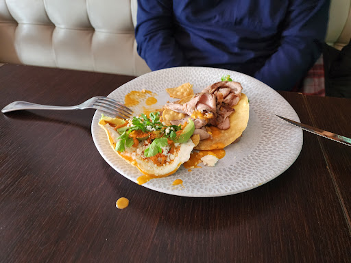 Read moreOh wow. I had a long wait at the radiology clinic across the way from this place and I got really hungry. So I ran out looking for something to eat close and that had decent vegan options. I checked Google and found this place. Some reviews said they have an excellent vegan menu. Idk if they did at one time but now they have a few dishes placed throughout. I got the oyster mushroom tacos. 2 for 20. I was thinking that's pretty high for 2 little street tacos, but when I tried them I wasn't mad anymore. They piled the ingredients high so it was actually a decent amount of food. The flavors melded so well together but still retained their own qualities. The oyster mushrooms were marinated and cooked perfectly. Lots of flavor and amazing consistency. Very meaty. The roja and verde salsas added some kick to the mix. The tacos were probably my favorite. I also got the guacamole/chips and the tortilla soup with vegan crema. Not sure how much each cost, but my total came to 50 bux for my take out meal not including tip. So minus the 20 for the tacos that leaves 30 split up between the two. The guacamole was my second fave. It had cilantro, tomatoes, lime, radish, possibly a bit of onion, jalapeños, and was seasoned very well. The chips seem homemade. Yum The soup was super good too. Kinda thick with some onions, avocado, and things in it. The cashew crema in it is very cheesy and melty. The tortilla strips and cilantro was packaged separate so they wouldn't get soggy. So overall this was an expensive run out and grab a bite type situation, but I was more than satisfied so i dont regret it. I'll definitely be back when I have time to sit down and enjoy a...