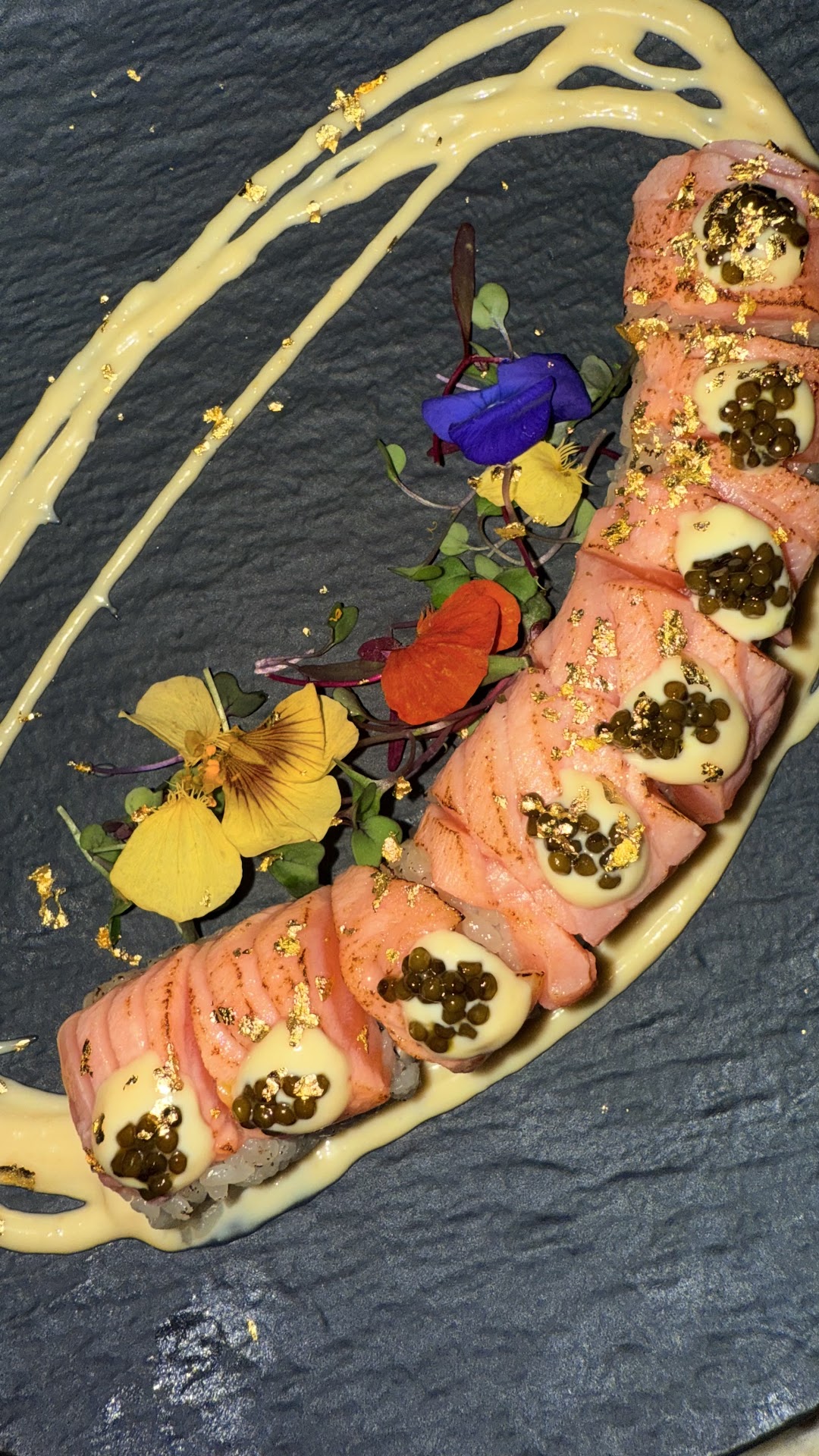 For my main, I couldn’t resist ordering the Diamond Roll, and wow—it lived up to its name! Packed with lobster, caviar, and topped with gold flakes, it was both visually stunning and bursting with flavor. For dessert, I indulged in a chocolate tart with strawberries and, yes, more gold flakes. It was the perfect ending to an unforgettable meal.