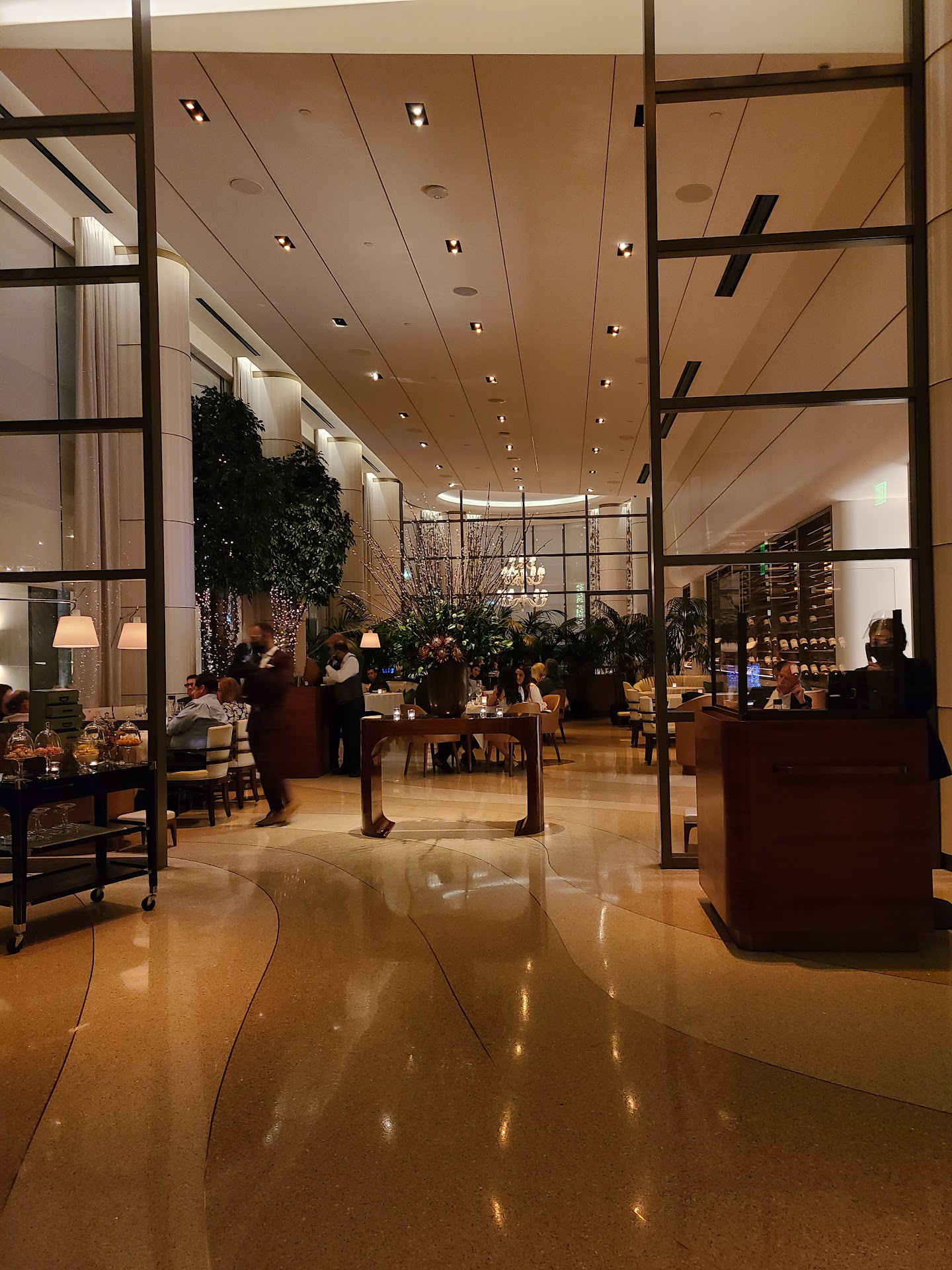 Jean-Georges is excellent in presentation, ambiance, and service. Their staff is accommodating and thoughtful to your needs. Waiters and staff are attentive, and they work well as a team to service your table. You aren’t being disrupted but there appear to be 3-5 wait staff who take care of you while dining. The ambiance is low warm light, and high quality leather chairs and couches that are comfortably distanced from other patrons, (which I feel is uncommon in recent times). The pictures online do not do the restaurant justice. 30 ft high ceilings, floor to ceiling glass, clever elegant design and decoration, with a traditional dining layout. It is a very comfortable place to spend an evening. The food was excellent, and the cocktails were well balanced. We ordered the cheese ravioli and requested to have them split as an appetizer, and the presentation in the plates made us realize the level of fine dining being provided. The staff and restaurant will do what they can in reasonable fashion to accommodate you. Next was the encrusted salmon. My wife had never been happier with the texture and flavor of a salmon filet! She loved the leek and butter sauce, and paired well with the white wine. I enjoyed the colorado lamb with broccolini. The lamb was perfectly cooked, but in my opinion lamb doesn’t require any sauce and it was still excellently crafted. We shared the wild mushrooms, which I recommend but we felt that these were a little under seasoned. The luxurious experience of the Waldorf Astoria supports the excellence that Jean-Georges provides with dignity and humility. We will be coming back to enjoy the food and service again...