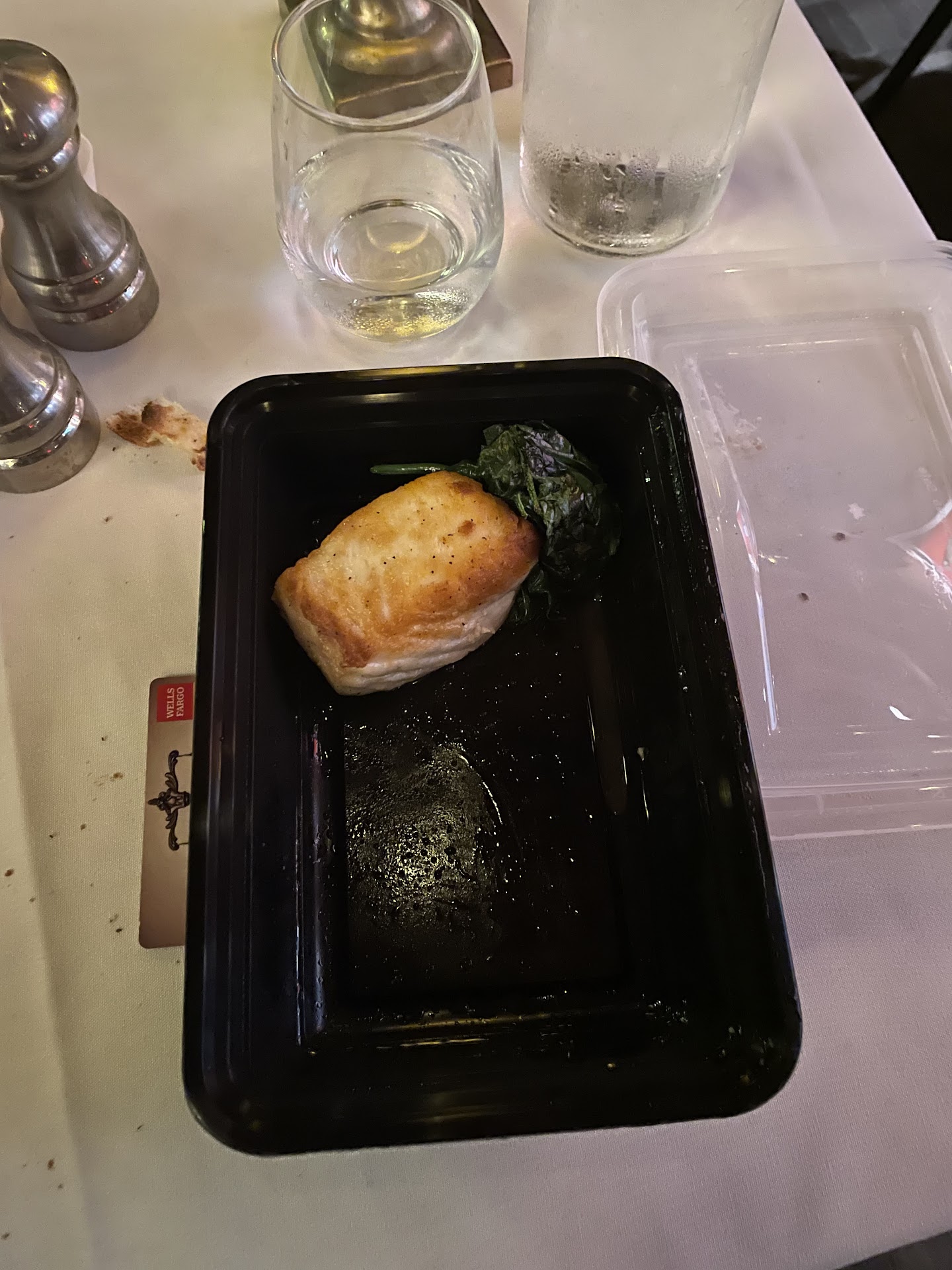 Now for the the bad news...the Busboy packed our leftover food and came back to say it was left "at the front for us". We said ok, and leisurely had a last glass of Prosecco.