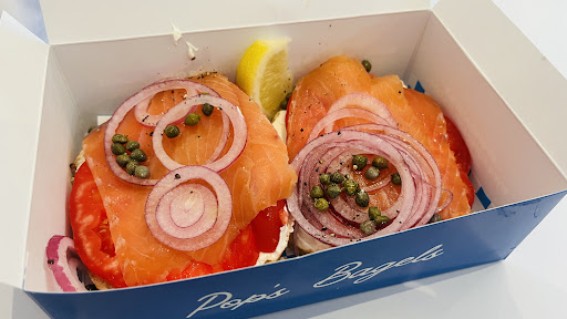 Iām a born and raised New Yorker . These bagels are not NY bagels . Way too large and bready. They do possess a kind of crispy crust which was interesting. POP Owners - note your bagels are not remotely similar to the beloved NYC bagels via H&H , Zabars or Russ and daughters . Your store is way too sterile, nothing warm or appetising . No scent of bread mixed in with coffee and smoked fish etc that makes oneās mouth water . Tall pristine counters , blocking the view of bagels , products and store clerks making food . Also crazy expensive . I bought a dozen bagels and a āpintā container of cream cheese for my co workers at the restaurant I work in ⦠my bill was over 50 bucks !!!!! I gave you guys a shot . Iām going back to Bagel Brokers .its warm , lively , inviting and the owner comes out and says hello . Also a more authentic bagel .