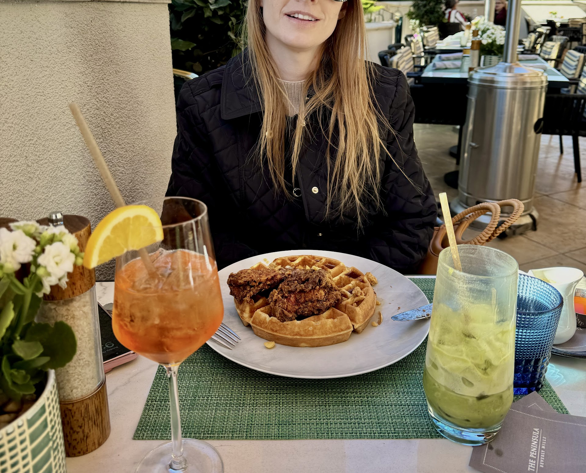 Read moreI struggled a bit with this review bc our experience was pretty good overall. had a really nice outdoor rooftop situation. the service was really great. food was delish. but here’s my issue. they didn’t have a cocktail menu (or at least i wasn’t give one) so i just asked if i could get an aperol spritz assuming the cost would be on par with other higher-end brunch places in beverly hills. they were $28 apiece!! lol… wtf?? and i’m pretty certain they didn’t put Dom in the glass. i expected to pay a premium to eat here but good Lord don’t have any alcohol...