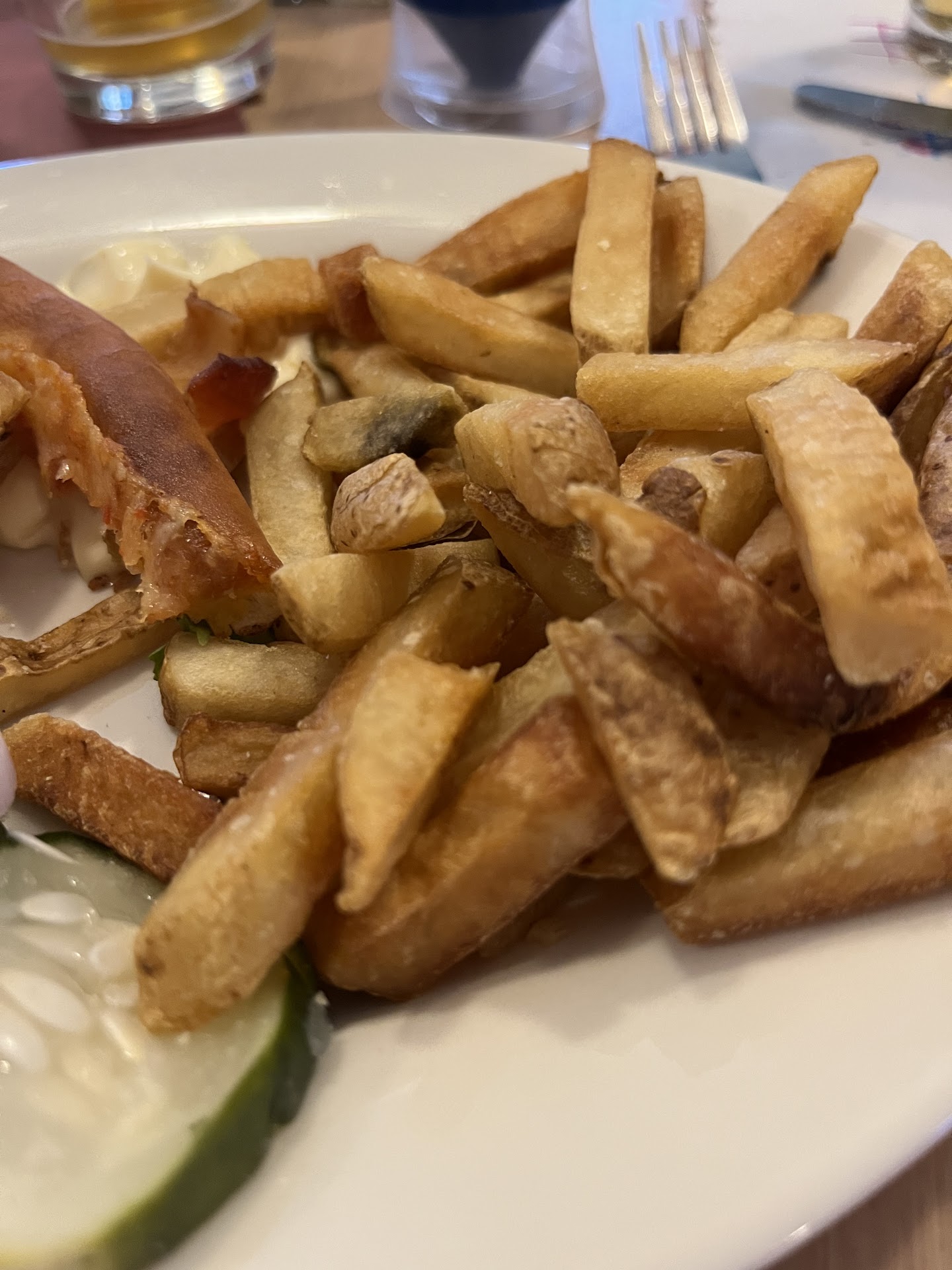 Read moreThe hubs and I came here for lunch yesterday; they opened at 1130, and 1230 the bar was packed, which was a bummer because we love sitting at bars. They had a lot more seating back by the bathrooms and pool table. They also had a cute little dining room area with a beautiful bridge mural. It took a few for us to be acknowledged and offered a table. But once seated, service was swift and helpful. Actually, how fast we got our drinks with how busy they were was a pleasant surprise. With most dive bars, I like to try out the wings to get a feel for the place. These buffalo wings were tender meat and crunchy on the outside, and oh my, that buffalo sauce was SPICY, and the heat built up with each bite! Maybe a bit too much sauce on them, but we managed to finish them all! Next time I think I would ask for the sauce on the side or lighter toss. They have daily specials, and the server was kind to describe a few. I chose the seafood pie, it had shrimp, lobster, scallops and haddock in a butter sauce topped with breadcrumbs. The dish was super decadent, and I could not finish. I chose to upgrade to a side salad along with fries. They are generous with the portions here, and the price is wicked inexpensive. Hubs got the fried haddock with pub fries and coleslaw. He said everything was tasty, but the coleslaw was a bit bland. Next time, we will aim to be there right when they open so we can sit at the bar, but there definitely will be many...