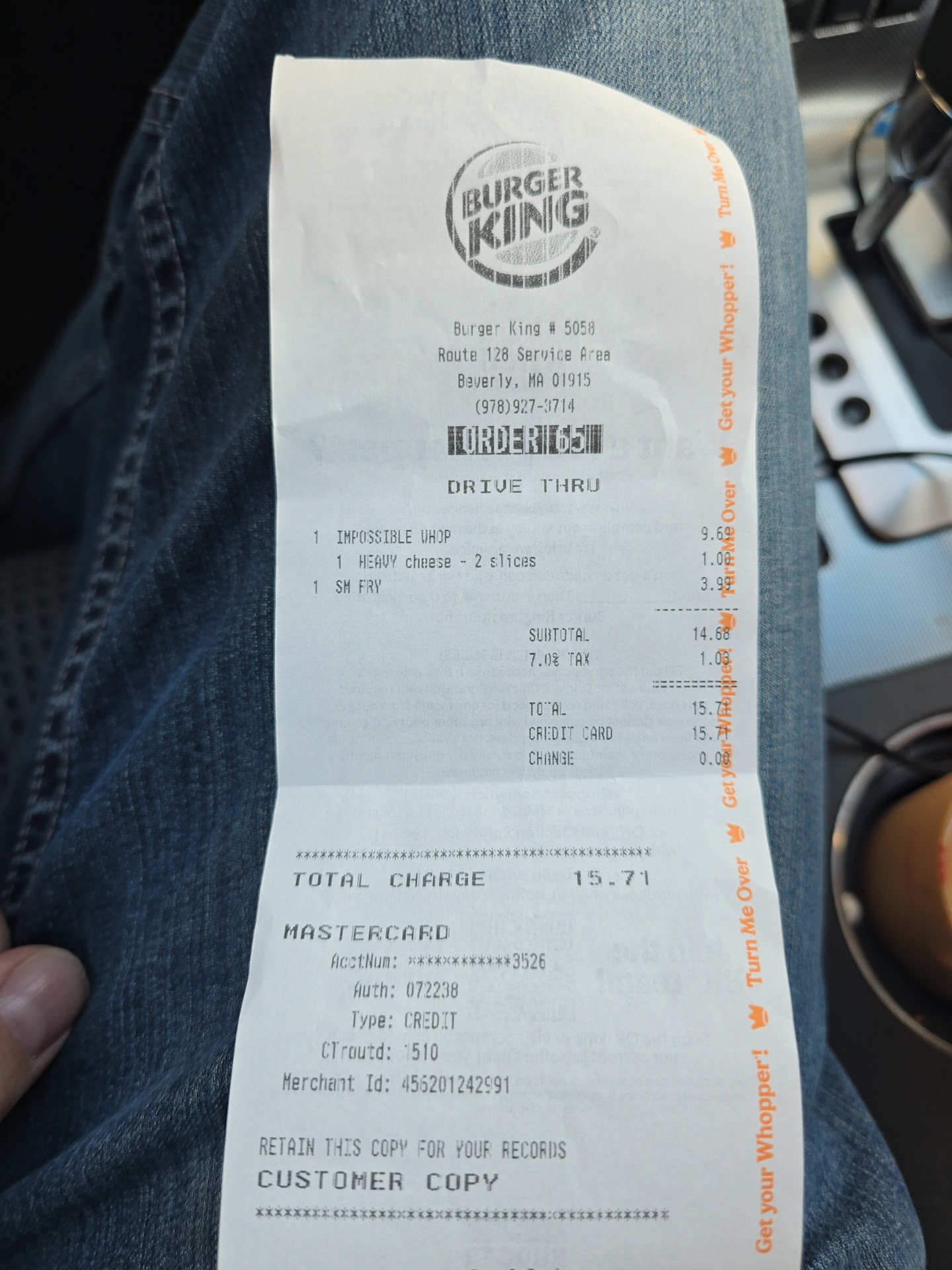 Read moreThe BK in Danvers on Endicott St. They have one person working both the counter and the drive thru. I was standing at the counter to ask for pepper and jam. She didn't see me because she was at the window. There was 2 other women in the back. Both of whom looked right at me and went about their business. Finally after a couple of minutes one of the women asked what I needed. My only complaint is about the biscuit which is usually very good. This time it was so dry it crumbled. Oh I should add they do not have jam at...