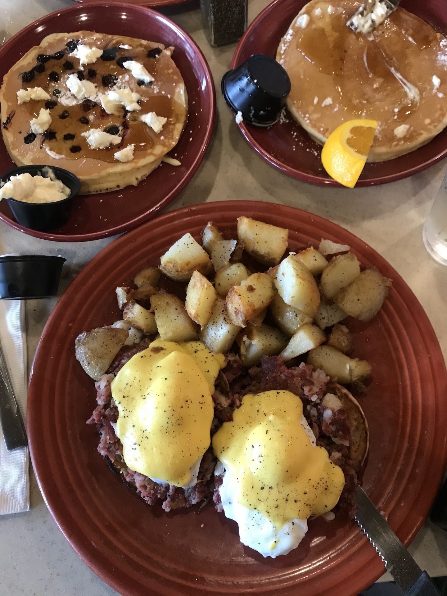 The food was phenomenal! We ordered the Eggs Benedict with corned beef hash, beans, and plenty of bacon. The bacon was crispy, delicious, and definitely not in short supply. The portions were generous, leaving us fully satisfied and happy. We also tried the Chicago omelet, which was fresh, flavorful, and, again, filled with lots of bacon. Each dish had great attention to detail, and it’s clear the kitchen takes pride in both flavor and presentation.