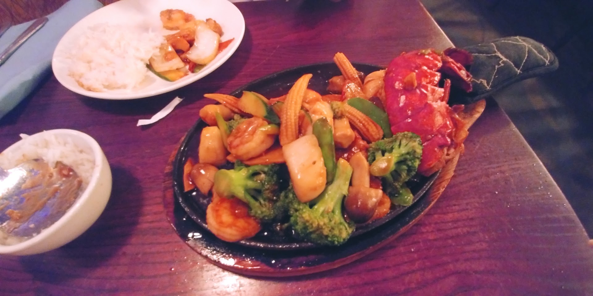 We went to this restaurant about 40 min before closure. A man was vacuuming. A woman seated us, and then the man continued to vacuum near where we were seated and then partly under our table. Then this man finished and told us the kitchen was closing soon. He seemed annoyed and behaved as though he was very anxious to leave. He took our order and then sat near us, waiting for the order. He brought our order and then sat near us waiting for us to finish. We had the miso soup, edamame, and vegetable roll first. The miso soup was very good, as well as the edamame in shell (hard to screw up). The vegetable rolls were ok, not terribly exciting unless dipped in accompanied sauce. Then our two main orders arrived, Kung Pao ( chicken) and Mongolian (beef). They should be referred to as Mongolian onion and Kung Pao celery!!! Where's the meat? It was about 20% meat and the rest of the vegetables in the Kung Pao (chicken) dish. It was mostly celery with a few peppers, scallions, and carrots. Also, it's not spicy and not flavorful. The chicken was cut so small it was difficult to even find in the dish. The Mongolian beef dish had about 15% meat, and the rest sliced onions and a few scallions. It was absolutely gross. I have had both these dishes at other restaurants dozens and dozens of times in the last 45 years, and NEVER have they been so TERRIBLE and such a rip-off for $15-16 a dish. The servings of rice for each dish were very small and not enough. We do not recommend this restaurant! Save your money and go to one of the Thai or other Asian restaurants in the area. We went there hoping for some good food and left knowing we wasted a lot of money. I saw that there were a lot of good reviews for this restaurant but apparently did not read thoroughly because most are...