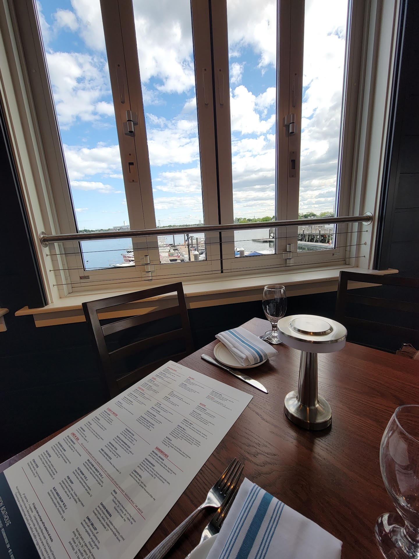 Being from the area and watching as new places get redone and pop up, Mission Boathouse falls into this. We went on Thursday around 5:30. First thing you notice is the bar has load house music playing, just in the bar area, but load for sure, love music, but the issue not everyone loves this music etc. Folks were all noticing how load it was. We asked the staff, could we grab a table (we did have a reservation as well, but the dining area was almost empty). We sat at a window facing the water, which was great. Waitress was attentive and informative on the menu. The only issue we had with our meals and the menu is they don't seem to go together. They have Prime Rib for over $50 and then a couple of lines above, you have a appetizer that is a Hot Dog, correct, a Hot Dog. For this caliber of restaurant, this should never be on the menu no matter how dressed up you want to make a hot-dog. Pictures below show Fried Calamari and Clam Chowder. The Calamari was fried but then covered in spice oily which was very good but no dipping sauces. This is not your Rhode Island Calamari, just a little different but very good. Being from MA my whole life, we know a good clam chowder - and this just off. It had the bacon pieces but we kept tasting sour cream for some reason. It was not horrible but again, something didn't taste right. And it had plenty of clams and a good size bowl. On the main dish of shrimp scampi - again a little off. It was super watery, very limited garlic and tomatoes. Tomatoes should not be in shrimp scampi - you could eat this but totally not what a scampi should be... The scallop special had 6 small scallops on just white rice, not jasmine as stated as well as sautéed vegetables - you could choose how you get the scallops blackened etc.. Also as a huge Bourbon drinker and knowing how a Manhattan should be made, this was no doubt watered down, meaning you left the ice to long in the shaker and now we have Bullet Manhattan watered down. I pick and choose my battles on this one in regards to sending back. Where they are new and getting their "sea legs" I'm very open to things. The location with its threw floors is awesome. This will bring in a lot of people for the view alone and an app - super cool location and...