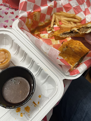 The guac was awful, pureed till it was almost a liquid and had no seasoning at all. The carnitas torta had potential but the carnitas itself had what I'm assuming is bits of the skin still on it. It was completely covered in these little white rubbery pieces which I will have a photo of to show. Whatever it is it made the whole thing inedible. The birria burrito was decent but took about 4 bites of pure rice till you got any meat. We also got the hibiscus drink was a thick syrup.