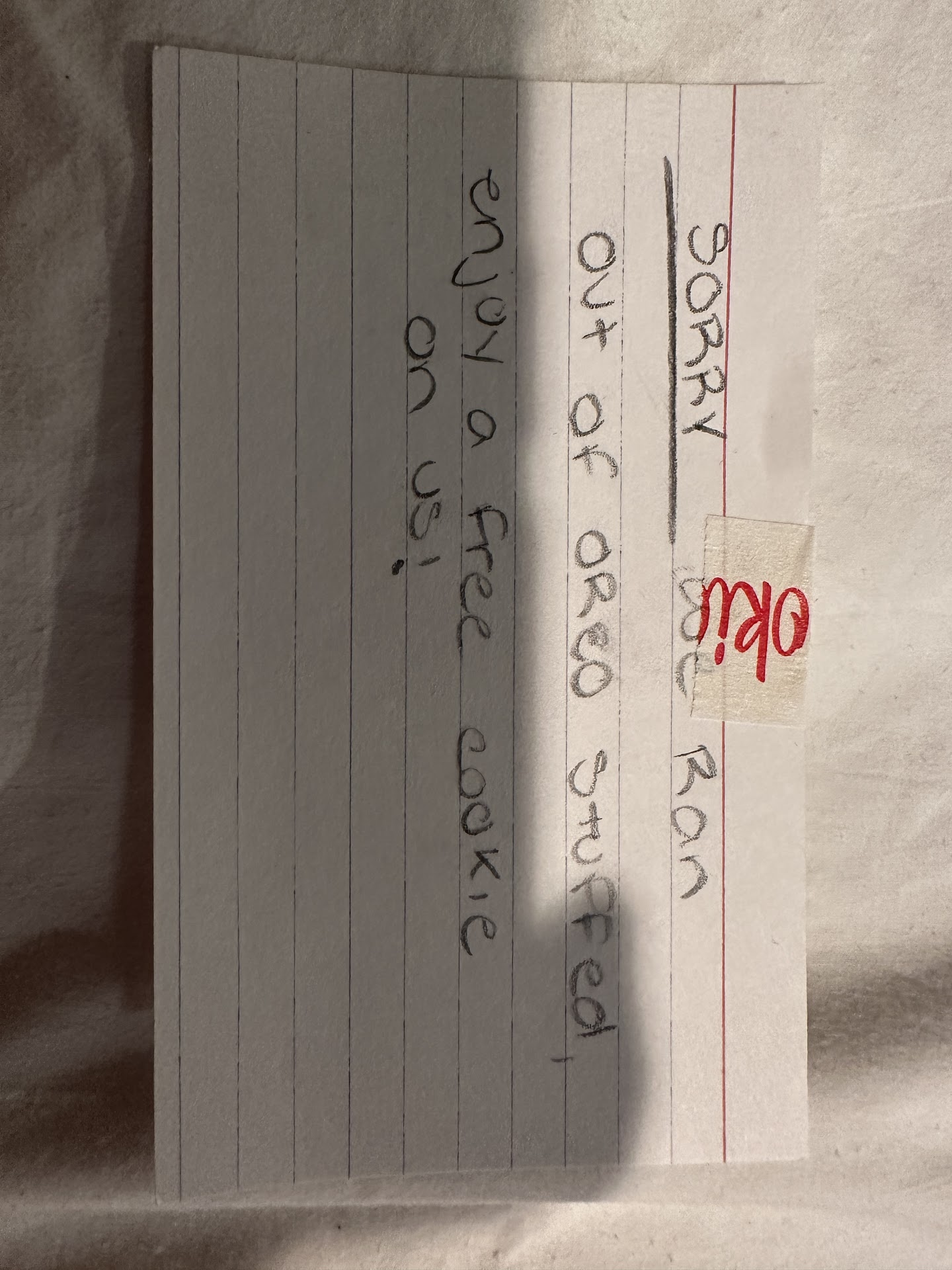 Read moreI don't typically leave reviews, but there's nowhere else to put in a complaint. Ordered a dozen cookies on my last night in the area. The two girls working were so unwelcoming. I know it's not the most thrilling place, especially at 8pm on a Monday, but at least show some energy. They barely even said hello, so it doesn't surprise me that they didn't mention to me that they were sold out of one of the cookies. Instead, I received the note and chip in the pictures. First, it's not a "free cookie" if I already paid for it, and you only gave me 11 out of my dozen, it's a rain check. Second, a rain check would be fine if I wasn't 9 hours from my closest Cookie Monstah. Had they literally just told me this when I picked up my order, I would've picked another one at that moment. Instead I now have a poker chip IOU for a cookie somewhere nearly 10hrs...
