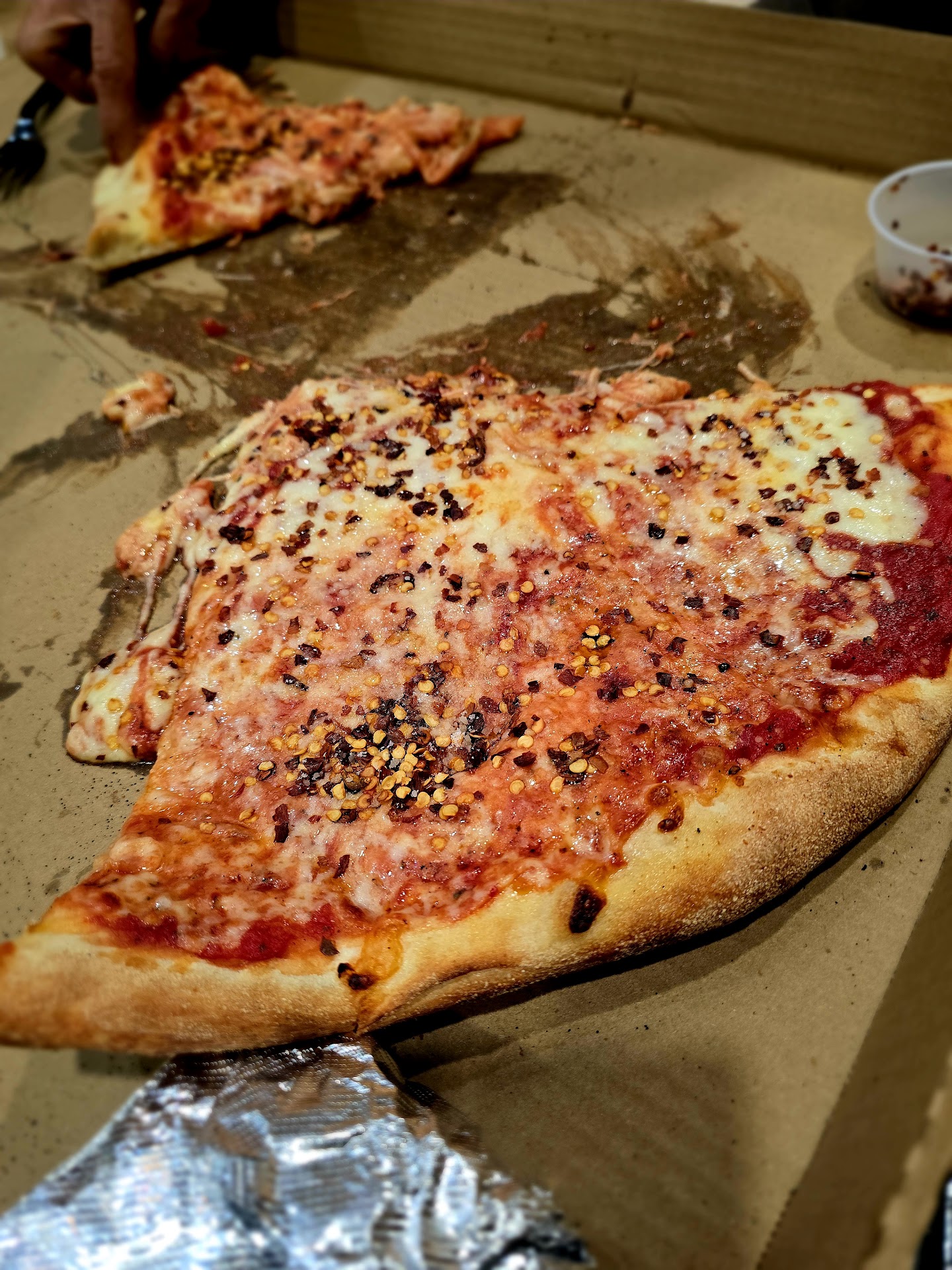 I got the Athena, which they offered to add balsamic to in order to achieve the flavor combo I was looking for, and it was on point. It came out so flavorful and fresh tasting —absolutely the best meatless pizza I've ever had, and one of the best I've ever had in general. Also, their large pizzas yield LARGE slices that do not fall apart when you pick them up —very satisfying.