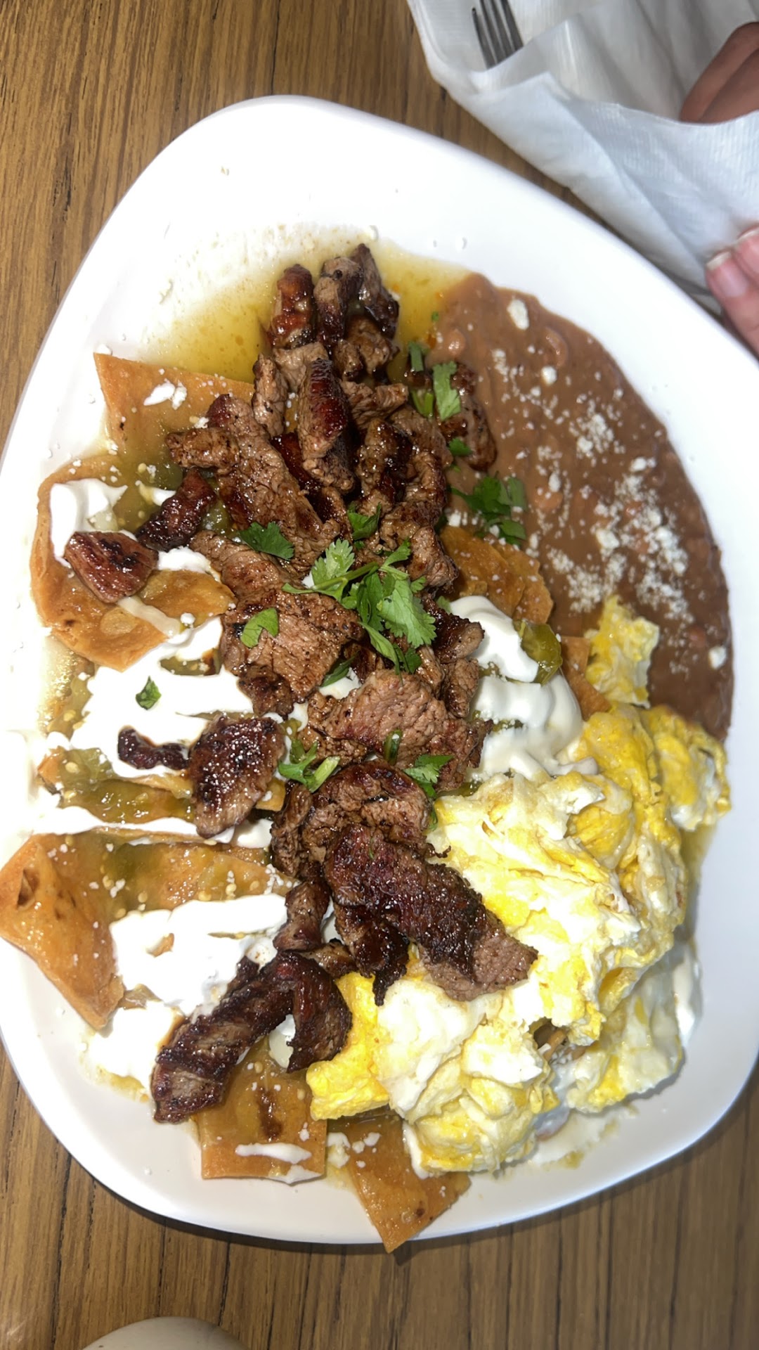 Now, letās talk foodāabsolutely delicious. My husband ordered the chilaquiles de mole with chorizo, and I chose mine with carne asada for some added protein. Both were full of flavor and made fresh to order. The frijoles fritos had the perfect touch of spiceājust enough to elevate the dish without overpowering it. Our son enjoyed The Snow Platter, which came with eggs, sausage, hashbrowns, and a pancakeāit was classic, hearty, and done just right. We also shared Mamaās potatoes with chorizo, and they were packed with flavor and generously portioned.