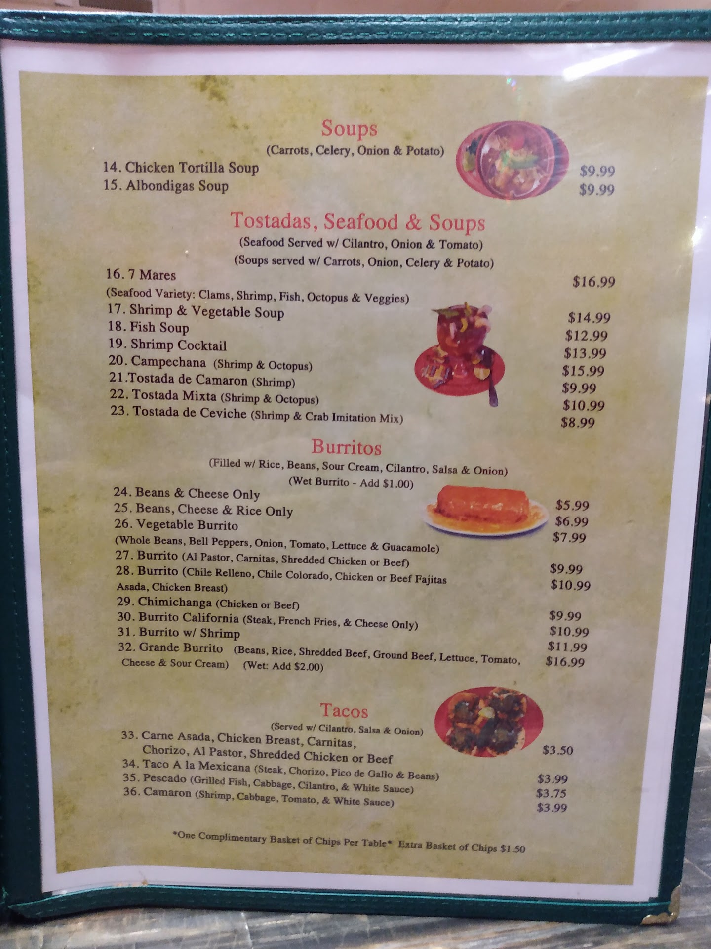 Read moreThe primary focus of this establishment is the culinary experience. The ingredients utilized are fresh and quality cuts of meats. They are expertly prepared by their skilled chefs. It looked like a Mexican mom and pop establishment, but the food was amazing!! I had ordered a Chicken Chimichanga with red sauce (wet), and the size of the burrito and generous amounts of sauce was killer good. ( No gristle, no bone, or dried out poor cuts of chicken) Only the good portions perfectly made. My husband had the steak fajitas. He kept commenting on what good cuts of steak they used and how delicious his food was. SORRY, but my huge wet chicken Chimichanga didn't have a chance to get its...