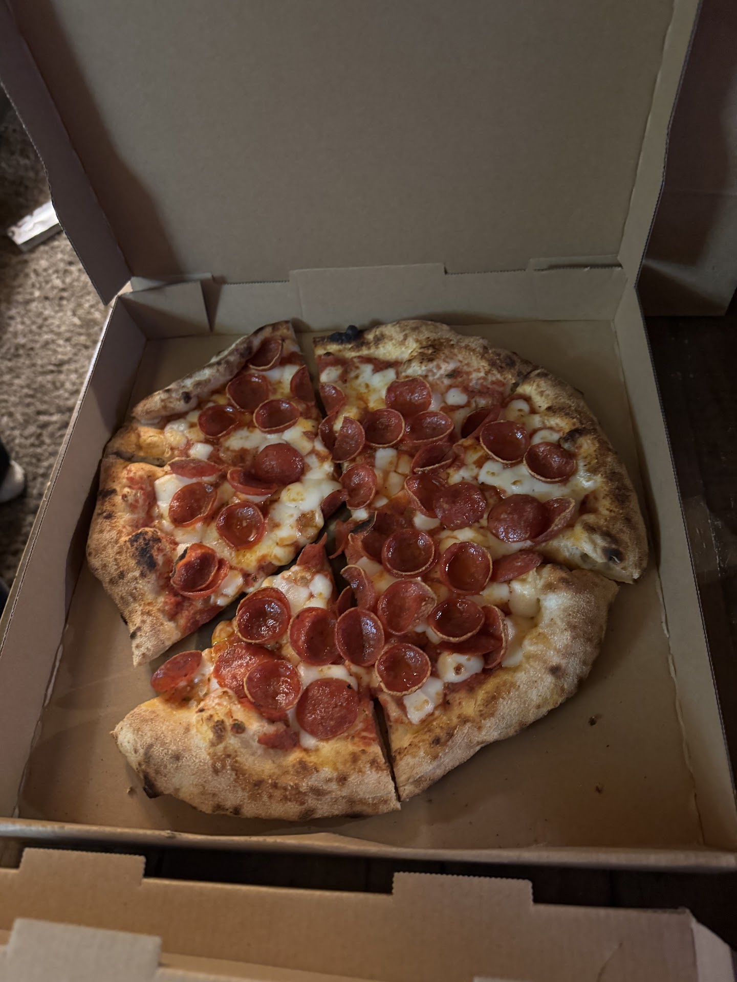I wanted to like it... the bread is wasted on lack of sauce portion and chunks of non melted super salty cheese. I like my pizza without a lot of sauce but there were too many super dry parts and thick tiny chunks of cheese that aren't fully melted so you are eating cold chunks of cheese with some burnt parts. I dont understand the thick chunks... better to cut them up and evenly distribute so you have melted cheese pull. Cheese is way too salty to be...