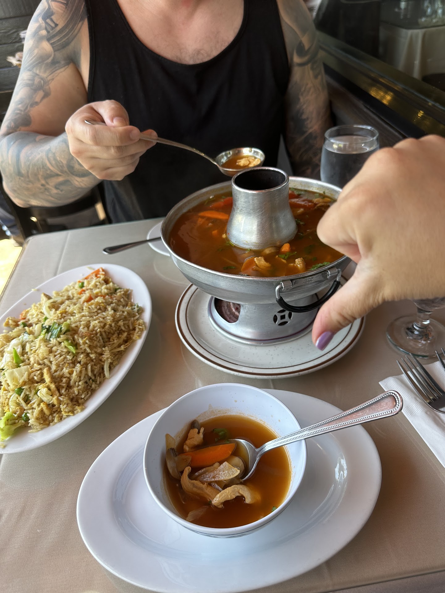 I started with the Crispy chicken rolls, which was tangy and aromatic, though I did wish it had a bit more punch from the lemongrass. For the main course, the Fried pork rice was excellent — perfectly spiced, served with fluffy rice. The Pad Thai was solid as well: sweet, savory, and loaded with tender chicken and fresh bean sprouts. A table near us ordered the Drunken Noodles, and based on their enthusiasm, I’ll definitely try those next time.
