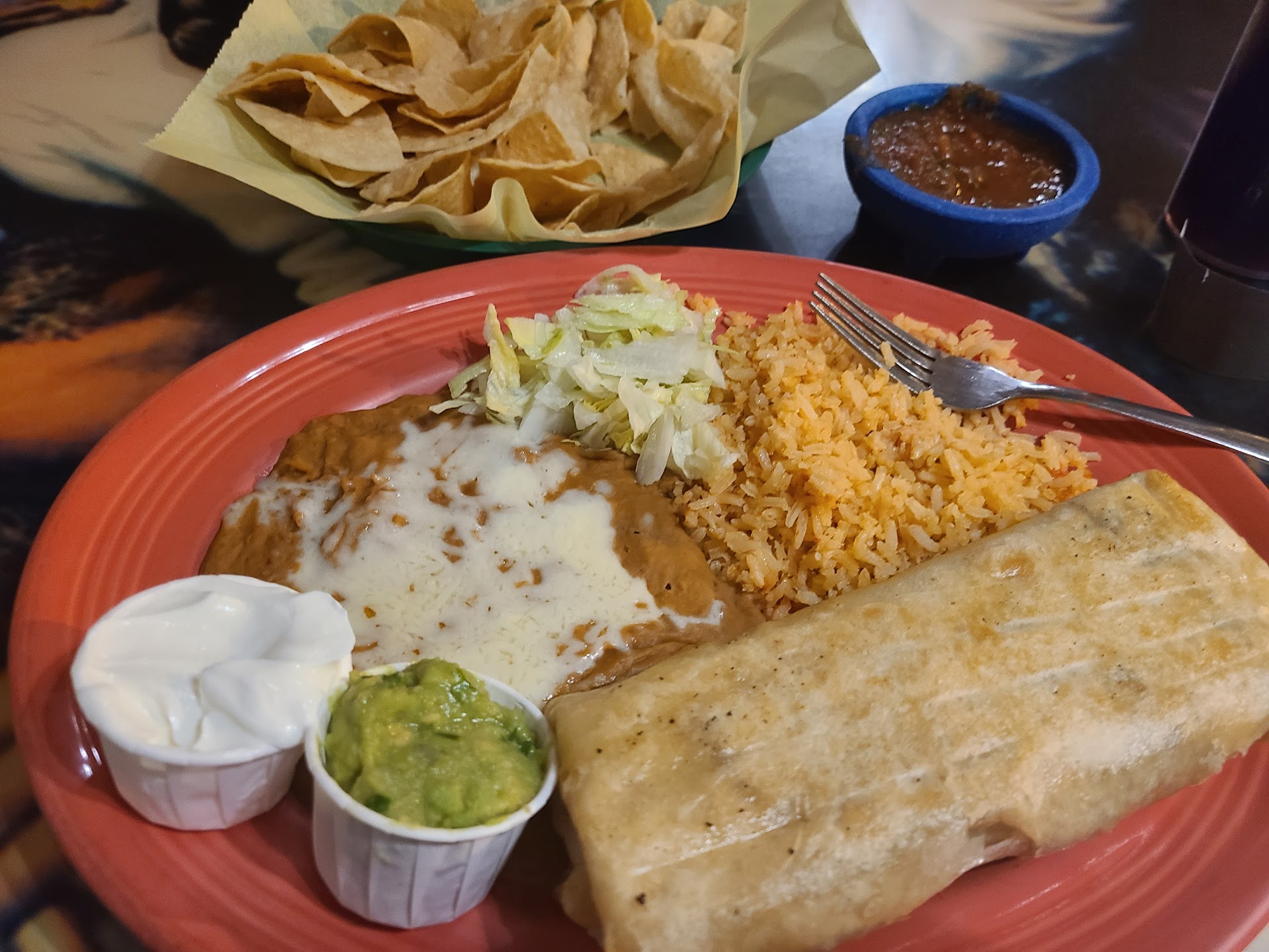I settled on a Chimichanga Combo made with shredded beef (you choose the meat). When it arrived, it was large and appealing. Guacamole and sour cream were included and were sufficient for the size of the meal. Everything was served piping hot.