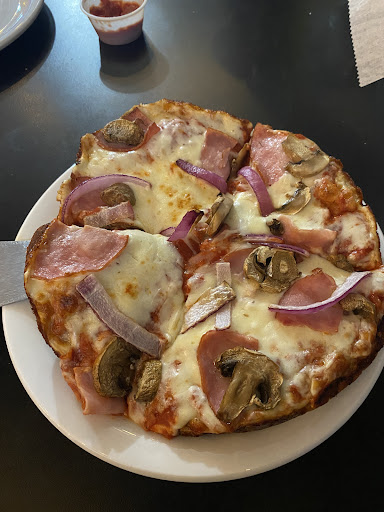Read moreGreat pizza! Welcome-so nice to have an independent pizza shop in town (lots of chains; although Jets ain’t too bad…). Love the energy of the space beginning with tunes greeting you outside as you approach the door, big screens on the walls, retro shop decor, garage door wall that opens -all pretty cool for a pizza joint ( I would hang out here to eat for sure). Since it was a solo stop, I got the personal pan to go -very tasty. Interesting price structure; one price ($9.99) but unlimited toppings. I loaded mine making it basically a meat lovers (bacon, ground beef, pepperoni, sausage) then with veggies too (red pepper and FRESH mushrooms, others…). Subs, salads RIBS and a couple other menu items you would not see at the chains. Very friendly staff! Not sure if they deliver but next time you think about a pizza, pizza give these guys a shot-you won’t be...