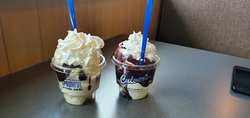 Read moreOverall, this Culver's is a great business and I was very satisfied with the dinner that I bought. I got the kids meal; a cheeseburger with a side of fries. When you buy the kids meal, on the bag is a slip that you can bring up to the cash register and get a scoop of ice cream with one topping; I really think that is a cool feature to add and there is no age limit. When I was ordering the cheeseburger, I asked the employee what came on it and she didn't know so she had to look it up. I also had to keep repeating myself when she was putting my order in; she may have been a new employee. When we received the food, our burgers were mixed up, but other than that I was really happy with how everything tasted. I noticed the workers were always cleaning off tables and restocking everything. The establishment was relatively clean, but the carpets were a little dirty as well as the bathroom. All in all, I was happy with my experience there and with such great tasting food I am sure to...