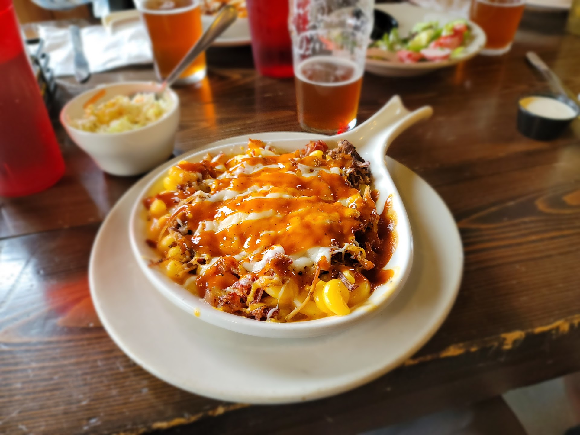 Read moreI’ve never received such horrible service. I’ve worked in restaurants for over 12 years and holy cow this was BAD. This place was not busy at all. There were only two servers working on this slow night. Our server slacked- she took too long (over ten minutes) to ask us for drinks and orders - And we sat for about 45 minutes untill receiving our food . First she came out with the wrong salad. We NEVER saw our appetizer we ordered nor she she apologize or mention at all whatsoever that it wasn’t coming. Our beers were flat- mine was extremely flat, no head or carbonation whatsoever. Our food eventually came- and once it did we waited with our food Infront of us for about 3 minutes because we didn’t receive any silverware. The person with me ordered the pulled pork dinner- which was just the meat and a potato.. since when does pulled pork ever not come on a bun? He had to eat just shredded pork off a plate!? I could continue nit picking but honestly I’m over this experience as it was so bad we left after paying our bill and still unhappily tipped 10% - honestly I’ve never left such a bad tip because I believe 20% was the standard but after completely forgetting us - HER ONLY TABLE- to go off and gossip with people behind the bar- I still was decent enough to tip even though I all god honestly wanted SO BADLY to leave NO TIP… We then left to order jimmy johns..