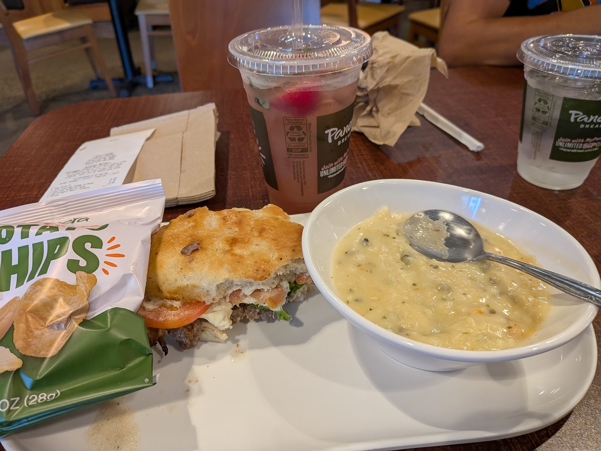 Read moreI have eaten exclusively at Panera restaurants this summer as I moved from out West to Michigan and have had the opportunity to compare the same chain in many different locations. I am leaving a review for this one because it was the best Panera I have eaten at. The cashier was very friendly and didn’t make us use one of the tablet ordering systems (don’t like those, I like a human to take my order). Our food arrived quicker than any other location, and was just as crowded (we were there for the dinner rush at 6:30ish). My soup was hot... at some locations the soup is only warm and I eat that first because I like my food hot (as soup should be) but didn’t have that problem here. As with all Panera locations, the salad was fresh tasting and food quality was the same. I liked how this Panera in big rapids included salt and pepper shakers at the tables. The table staff was friendly and kept the restaurant very clean, and I did not see any dirty tables or floors. This restaurant exemplifies exactly what Panera bread advertises itself as encompassing. 10/10 will stop at this location again every time I pass through....