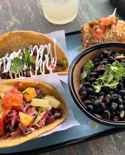 Food - they have a wide selection of delicious tacos and quesadillas and appetizers and large plates depending on what you are hungry for. Wide selection of meat but also vegan and vegetarian options, partially due to the chef/owner Brandon being vegan. I typically get a two taco plate that comes with taco tacos of your choice, elote, and black beans and rice. My favorite tacos are the blackened salmon and carne de res. Donât forget to hit the massive hot sauce wall, they can recommend specific hot sauces that pair the best with your meal as well.