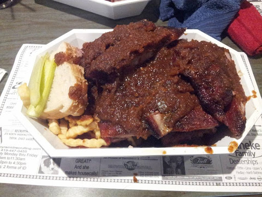 Read moreWill not be going back. I am a big fan of BBQ and I personally would not call this that. We were first taken back by the menu that listed ribs, shrimp, ham, beef and a couple other items with no details. Didnât think too much of it did feel weird having to ask. (Heads up, ham is cubed and beef is bite size slices)I got the beef. Beef itself was not bad but the âBBQâ was. Maybe I was confused and it wasnât BBQ with the beef, but whatever it was or was supposed to be was bad. The best way I can describe it is watered down sloppy joe or chili topping you would pour over a hotdog (but more watery). I had to fish through my chunky sauce soup to find the beef. The sauce was so watery when I would pick up a piece nothing would stick. The BBQ sauce on the ribs my husband got tasted the same but was not as watery, so who knows. As to the actual ribs, which I saw most people getting were not good at all. My husband said they were dry and had a slimy film on the bottom. We had other people with us and no one at the table finished their meal and all said they were confused by the BBQ and the quality of meat was poor. Meals come with fries, shoestring, which were the best part of the meal, two small slices of celery and two slices of bread that were small enough they didnât even add up to one normal slice of bread. Service was great, no complaints there. Atmosphere was fine, had that small town feel of a restaurant that moved into an old building. Overall though, the menu and quality for the price could use some work. Know people who have eaten there before and said it was good but I also saw that management changed so maybe that...