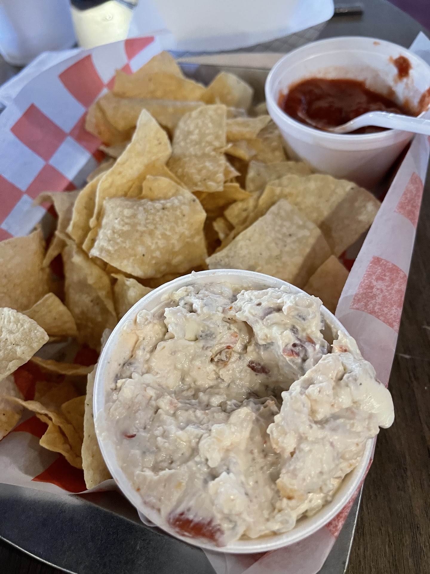 Big John's is different - This place is busy and the lot starts filling up before they open at 11 am. 2.They are big on service! You won't die of thirst or need anything as often as the staff come by to visit you. The portions are between perfect to oversized. Their BBQ: it is clearly made to appeal to as many palates as possible, not much of a smoke ring on the brisket plus it was a tad on the dry side, their jalapeno sausage had almost no smoke flavor at all but was very flavorful. Would have been dynamite with a smoke flavor profile. The "Crack" - it appears to be a cream cheese base with a bunch of seasoning and jalapenos? Maybe? Personally, I did not care for the condiment because it took away from the taste of the food it was added to, but a lot of others had to have it and raved about it. A Fried Hamburger! This was really good!, not overcooked and fun to eat - the staff will ask if you want "all the fixins" and if you say yes, you're going to get a pile of lettuce, tomatoes and onions to make a separate salad. And a dump truck full of French fries as the side. BTW - Their coleslaw is top notch too! The little custard dessert at the end is a real slap to the back of your head - I never saw that coming. Excellent palate cleanser before you leave.