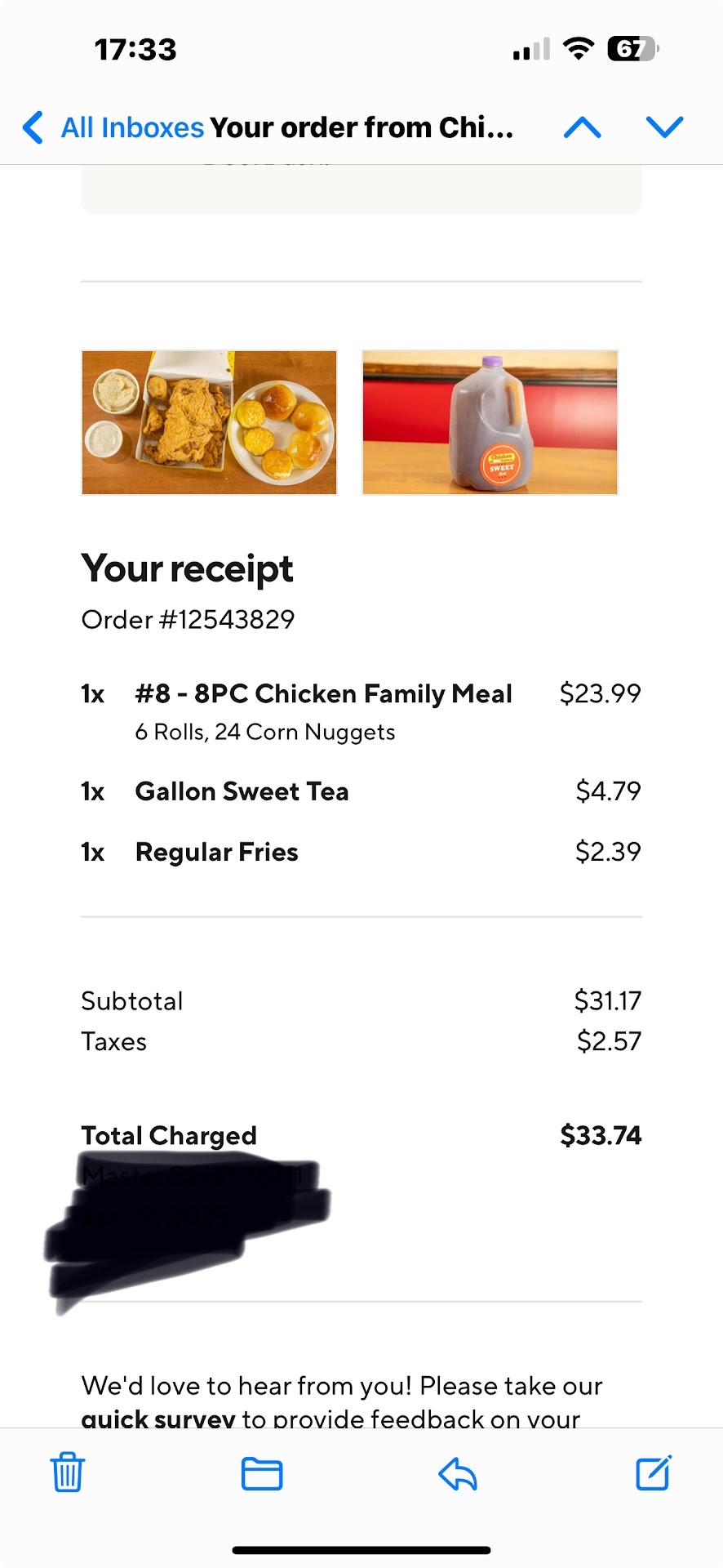 Being vindictive & putting food, bread items in something wet before being picked up by someone that said they are having to come in from out of town for their mess up!!! Not even offering free tea or anything to compensate for their mess up!!! Eat someplace where management would better compensate for their employees mess up & not have them totally foul up your paid for food you have to double back for, fair warning is all... When you're full time working families relying on other to cook your meals, I'd let anyone else but CE make your chicken & tenders!! Even Walmart felt at...
