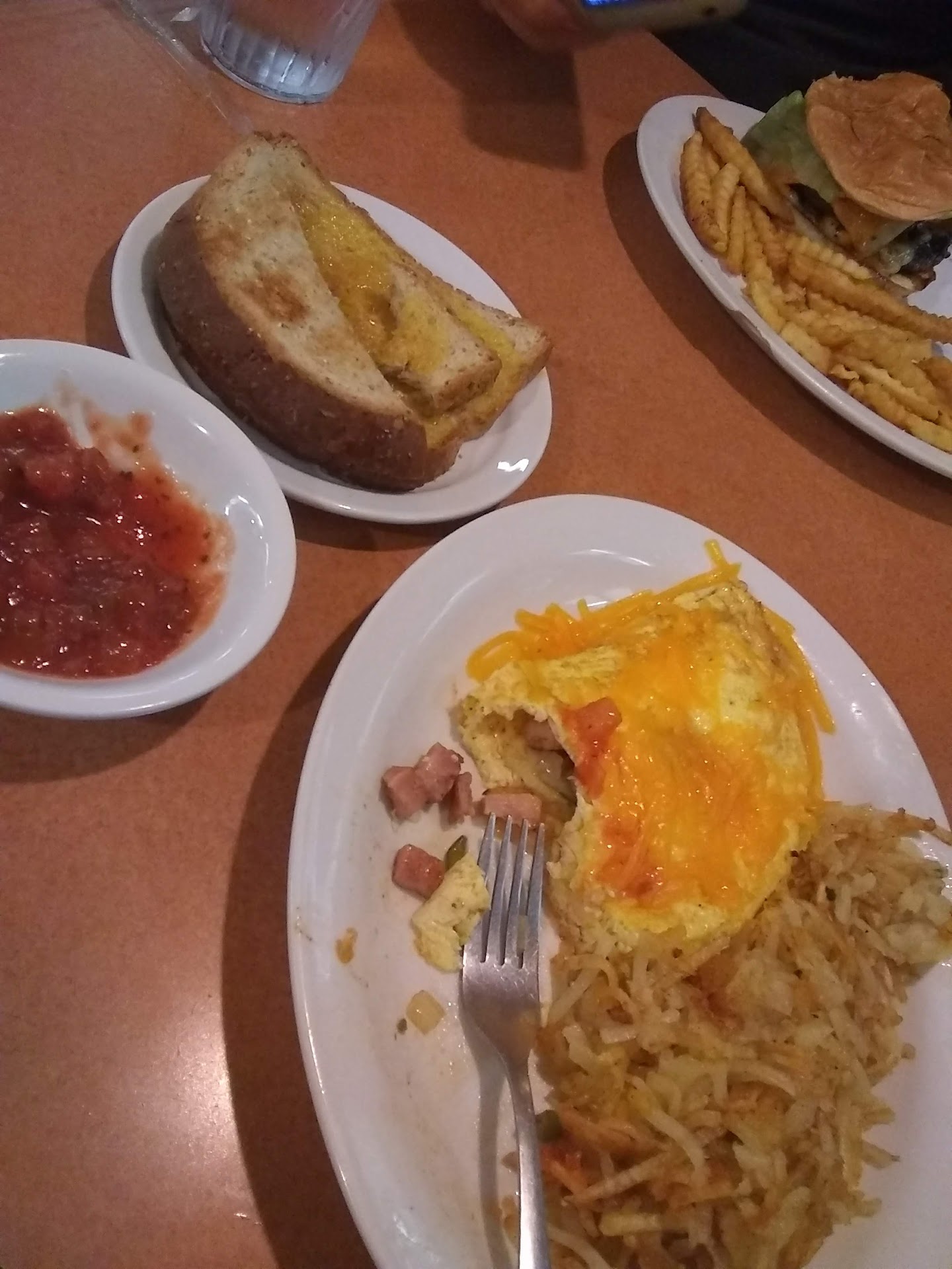 Read moreThis Country Pride location is rather hit or miss. Last night, they simply dropped the ball, though. When a waitress recommends NOT eating the daily special (Thursday's beef tips and noodles) because the noodles "look mushy and bad", I should heed the mental warning bells. A scan of the very tired looking food on the buffet should have warned me in the first place, I must admit. Instead, I tried breakfast. They proved you really can screw up bacon (what is so difficult about making crisp bacon??? It's NOT rocket science...) and over-medium eggs. The eggs were barely done, the bacon only made one trip back and all of the food except for the pancakes tasted like old grease.