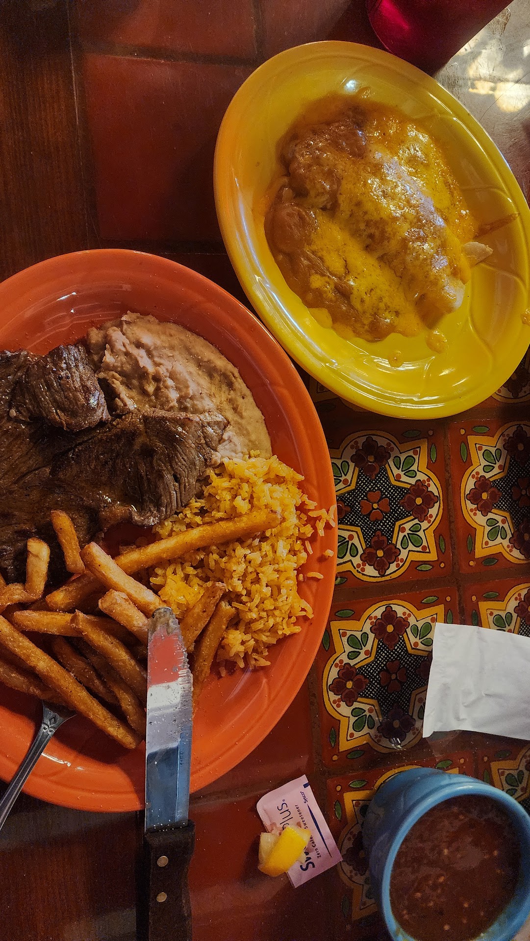 a quiet place to eat and the food is an excellent portion and very rich, I ordered a small shrimp cocktail as a starter and the shrimp was super clean and a good portion, for the main course I ordered some green enchiladas that are delicious I recommend them with an excellent portion of 2 enchiladas (I wish it were 3) accompanied by beans, rice and picó de gallo, it would be incredible to be able to change the picó de gallo for lettuce and tomato something but it is super delicious, I do not put photos because I enjoyed the food 100% and fast...