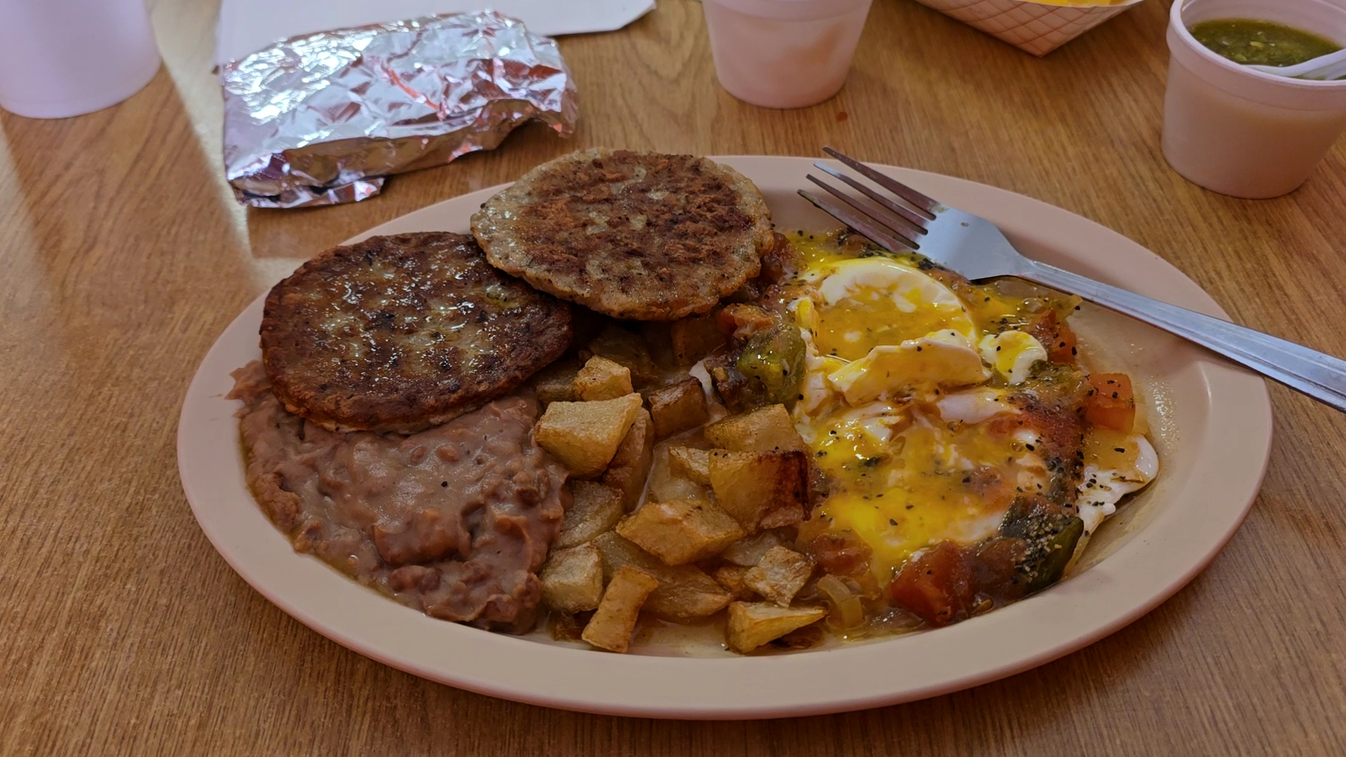Read moreI arrived at 7 AM for breakfast. Eddie is the owner and he greeted me nicely. Started my morning with a couple cups of coffee and then I ordered something that you must try! The breakfast enchilada! I added hamburger meat, cheese, side salad, extra red chili And a tortilla on the side it came with beans and potatoes. I have marked this in my favorites so I can be sure come here as I only visit one to two times a year. Fortunately, I will be here in two weeks and will be joining Eddie for breakfast again as well, thank you Eddie for a wonderful breakfast and thank your mom...