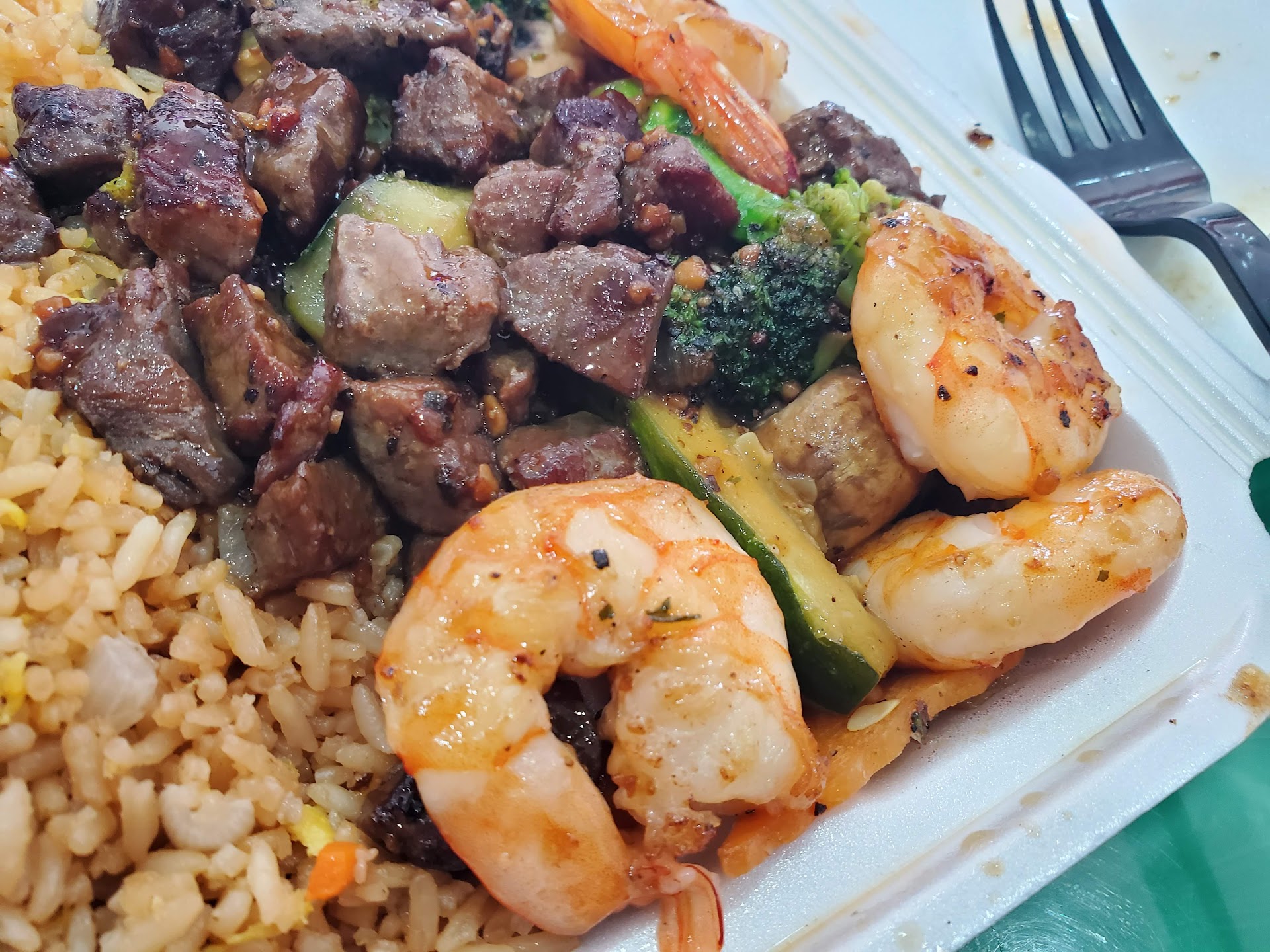 Okay, so I'm hanging for the evening in the Walmart parking lot (trucker), and I feel like some food other than my usual store bought cold food. I look up "food near me" on The Google and I see Hibachi Express right across the parking lot... serendipity?