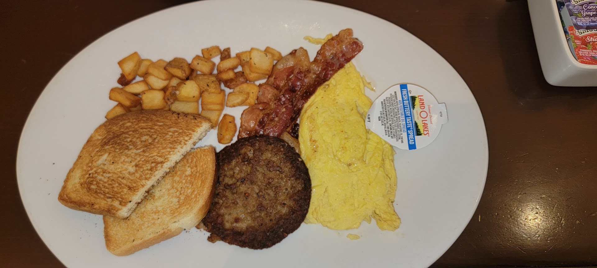 Read moreTalk about horrible food. Could not even eat breakfast here so over cooked and didn't even get what I ordered. Ordered the Big Texan Breakfast, eggs were overcooked and no cheddar, menu says cheddar scrambled eggs. Toast is burnt as well and just plain white bread not sourdough. Wife had biscuit and gravy, the biscuits were super dry and the gravy is salty and add on $4 eggs that were ordered over easy and guess what also over cooked med/hard. Only thing that came out okay was the waffle. We just left the food on the table and told the waitress sorry but what a disappointment. Went to Tita's instead for a great breakfast. Would rather eat a free hotel breakfast than...