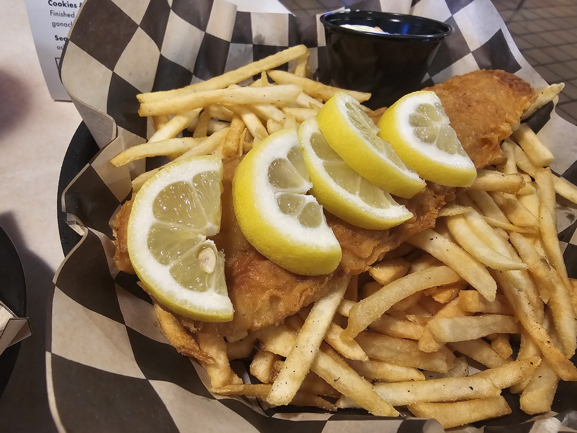 I ordered the fish and chips, which was 'more chips' than anything. $19. I've never ordered fish and chips and only got one piece of fish but whatever. I asked for extra lemon, and they gave me LEMON WHEELS. HOW IN THE HELL AM I SUPPOSED TO SQUEEZE LEMON WHEELS? ANOTHER RESTAURANT OWNER THROWING PROFITS IN THE GARBAGE.