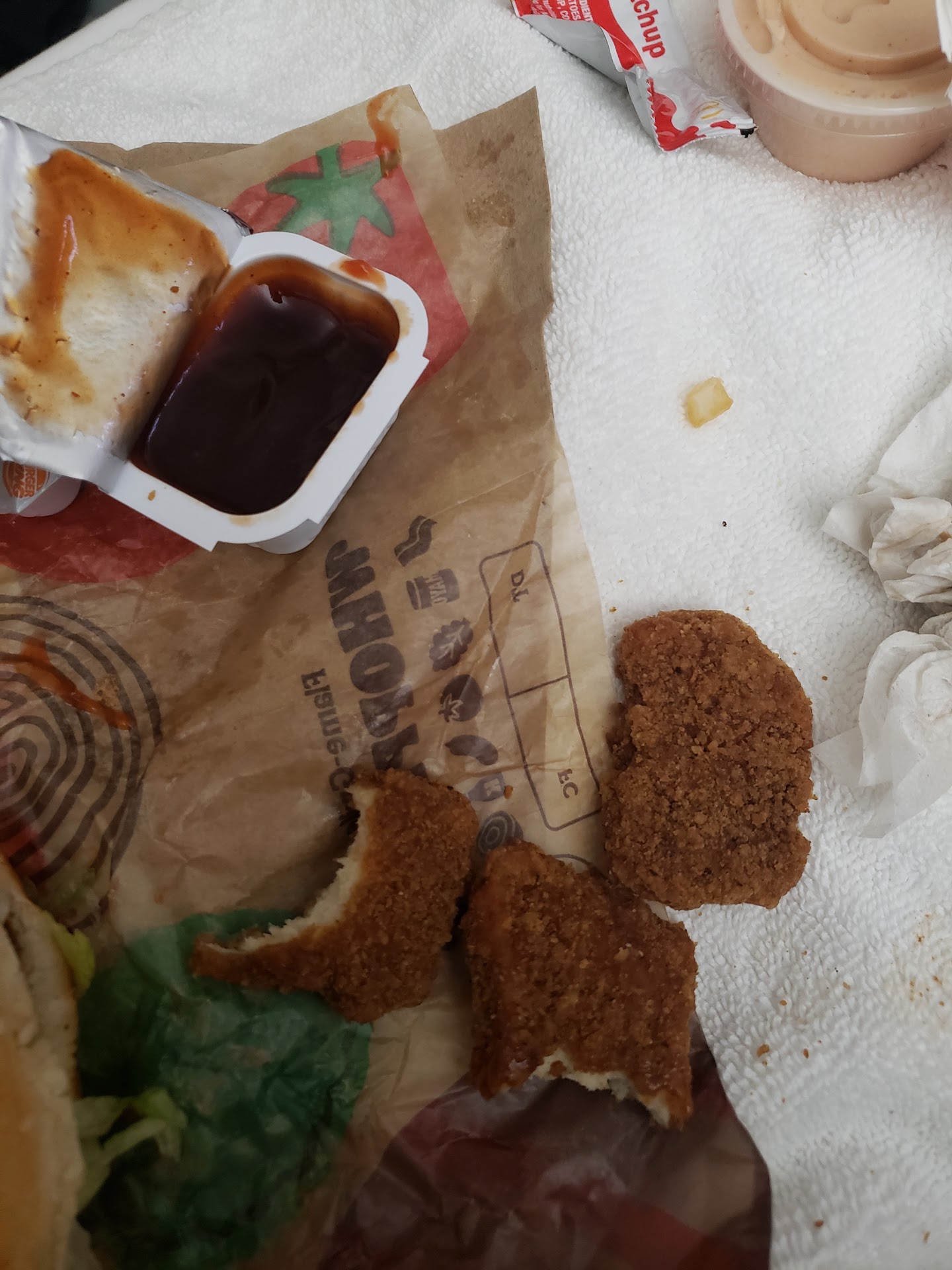Read moreDisgusted with my last 2 visits. 1st one was about a week ago. Hubby and i and our 1 year old son went through the drive through. we ordered the 2 for $5 original chicken sandwiches and a medium fries, only to be told our total was gonna be 10 dollars and some odd cents. How is it 10 dollars if we ordered the 2 for $5 and a medium fry is like a dollar something? Ridiculous. So we get up to the window and the teenaged girl was rude when we commented that we wanted the 2 for $5 deal as we asked for 3 times while ordering. our food was very poorly bagged. the fries were super cold, tasted almost as if they went straight from the freezer to a box and then salted. nasty. the fries were all over the bag too. I worked at mcdonald's and let me tell ya, i never allowed food to be bagged so poorly. 2nd time we went to this location was yesterday evening, roughly about 530pm. It was me my husband and our young son. Hubby ordered the 2 for $6 whoppers, 3 of the 10pc nuggets with ranch, and then i ordered the bacon and cheese whopper meal (combo number 3) with NO PICKLES. Even said no pickles on our receipt. We got our food only for my burger to be LOADED with pickles. I pulled about 6 pickles out of my burger while eating it. Luckily our son likes pickles. My husband's 2 whoppers were very poorly made. The tiniest dot of mayo, a few tiny pieces of lettuce, 2 tiny pieces of tomato, and just a huge sloppy mess. He didnt even want to eat it but he was hungry so he ate it anyway. While we were sitting and eating, i noticed one of the male managers go back to assemble some burgers and he was grabbing the hamburger patties with his hands! and then proceeded to touch the lettuce and tomatoes and other condiments with the same hands! no washing in between! I'm VERY OCD about people touching my food. Thank god that manager did not touch my food or i would have sent it back and demanded it be remade with gloves. That is just nasty and i feel terrible for the poor customer whose food was made by that manager. Not to mention there was 2 other managers, one with really long red hair not put up as it should be, who were joking around by front counter while there were 3 customers waiting to order some food. looked right at them and turned away to stare at the monitor of orders. Ridiculous. I highly recommend to anyone to stay away form this location. I love burger king but i will not be giving this location my business if this is how they allow their...