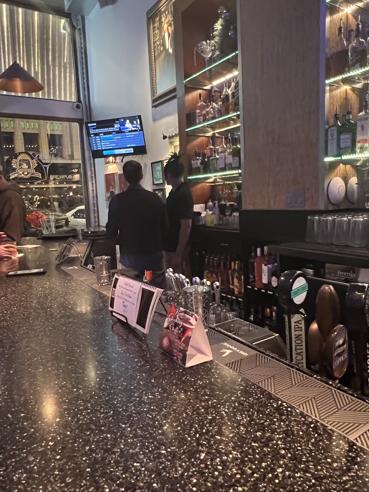 Our first stop was at Stacked next door; which provided excellent service. We asked for recommendations on places to drink and with resound they recommend Doc Harpers.