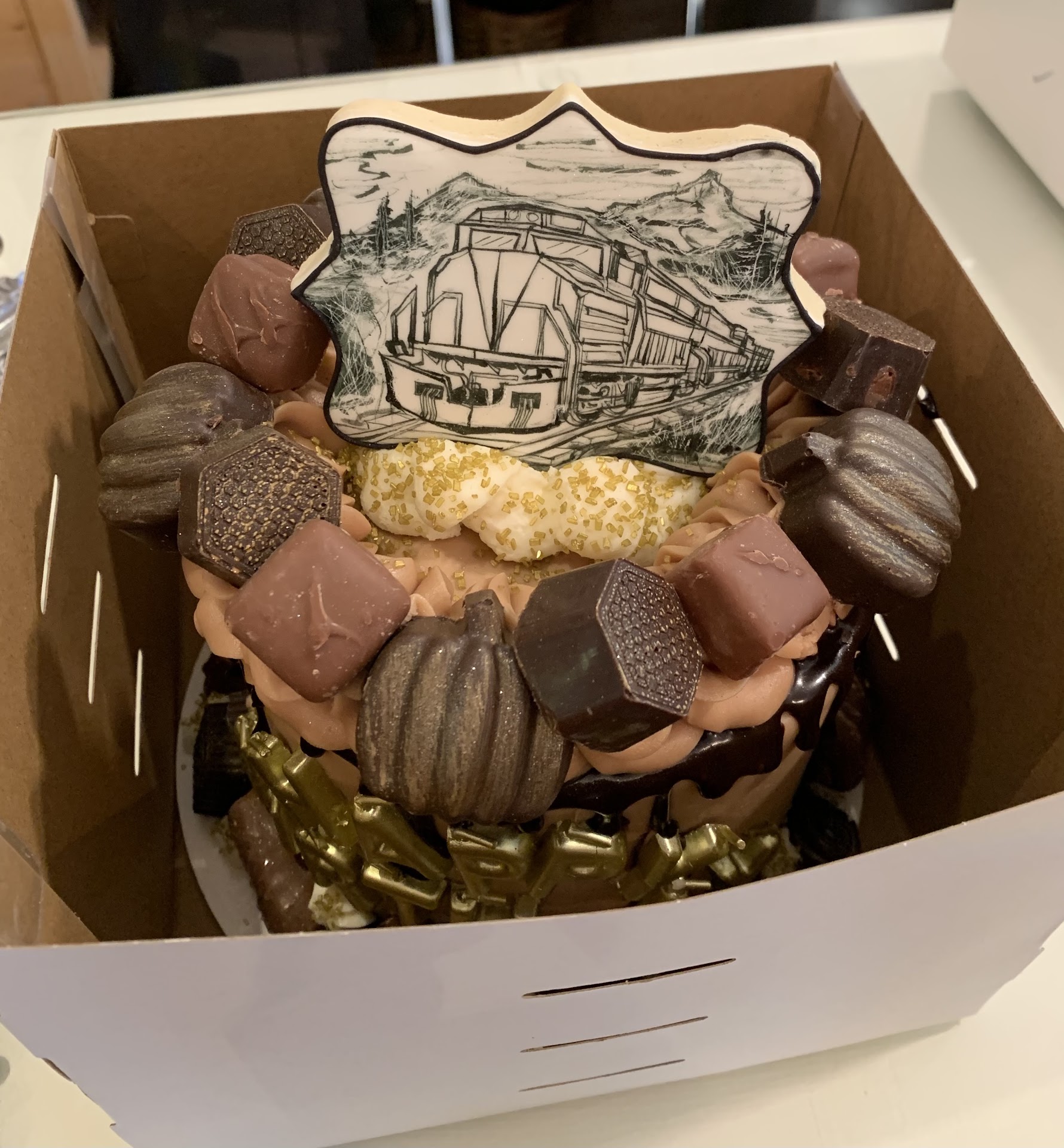 Wow…what an incredible cake that was created by Elegant Spatula and Bakery. I called on a Saturday and asked if was possible to order a custom cake for Tuesday…not only did they deliver a fabulous masterpiece with a hand painted train on the cookie, but loaded it with chocolates and handmade truffles that were out of this world. The owner asked specific questions about who the cake was for and what he liked…I said, “Chocolate, eclairs and trains.” They made the most delicious chocolate cake with eclair like filling. When I went to cut the cake (My husband and I had planned to share a piece)…. My husband took his first bite and said, “You better cut yourself your own piece!” The cake was the best I have ever had and I eat a lot of cake…lol! It was so moist and the frosting was amazing too! This bakery also makes cookies, pies and other yummy treats beside cakes. Their price point is so reasonable. The owner told me it’s her goal to have her cake in everyone’s household…so she keeps a great price point. My thoughts were, Billings, MT is so fortunate to a business owner with her mindset. Definitely a 5 Star...