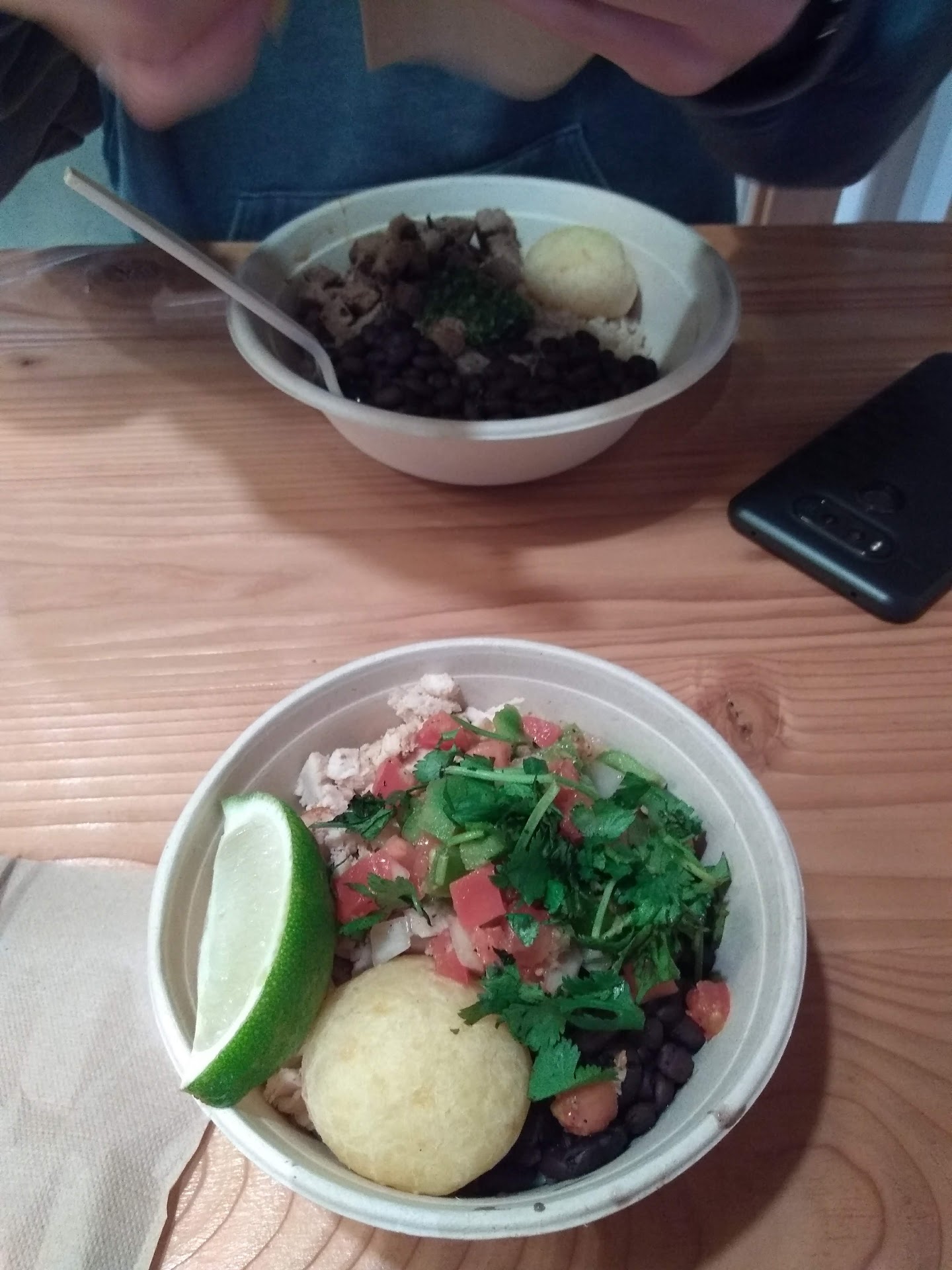 Read moreFirst time customer, we are driving through. We’ve been on the road for a few weeks now and fast food is getting real old, but we also don’t want to waste precious time in a sit down restaurant. This caught my eye for some fresh food and it surprised my expectations. This small chain could be the next Chipotle’s. I truely hope they expand. Employees were young and looked like they all worked well as a team with confidence, and some fun dancing moves while working together. Vibes were great, my three year old was loving it. I had the stew and made sure to get plantains, with the cheese bread. Wow, wow, wow! 10/10 would love to come back if I’m ever in...